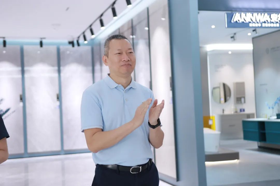 谢总及全国经销服务商代表一行参观走访了柳州新天地马可波罗瓷砖至尊店。门店展示面积达2000多平米,设计时尚,装修精美,打造了众多贴近消费者生活的实用场景,团队服务热情高涨,谢总对此给予高度肯定和赞赏。
