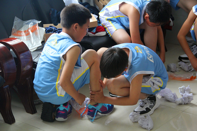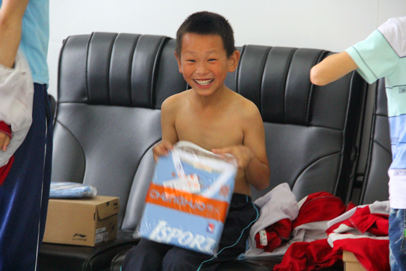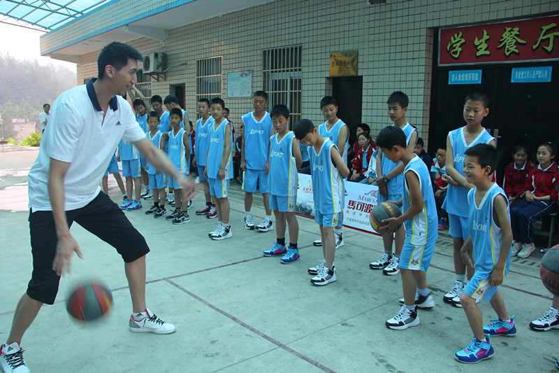 简单的仪式过后,孩子们迫不及待的换上新球衣、新篮球鞋,带着新篮球,开始了代课体育老师——张凯的篮球星课堂。