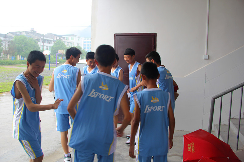 热情洋溢的孩子们用快乐拨开了天上的乌云,一系列篮球基本动作训练后,暴雨骤停。孩子们迫不及待地拉着张凯老师来到篮球场检验训练效果,小试牛刀。
