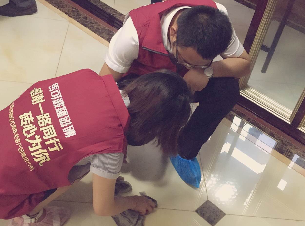 马可波罗瓷砖此次老客户回访活动不仅为客户提供清洁打蜡、填缝保养服务,而且还特别赠送马可波罗瓷砖20周年老客户回馈定制壶以及其他礼品,为每一位支持马可波罗瓷砖的客户送去关心和温暖。一次回访,一声问候,一句祝福,马可波罗瓷砖真诚为每一位客户打造舒适的家居空间。