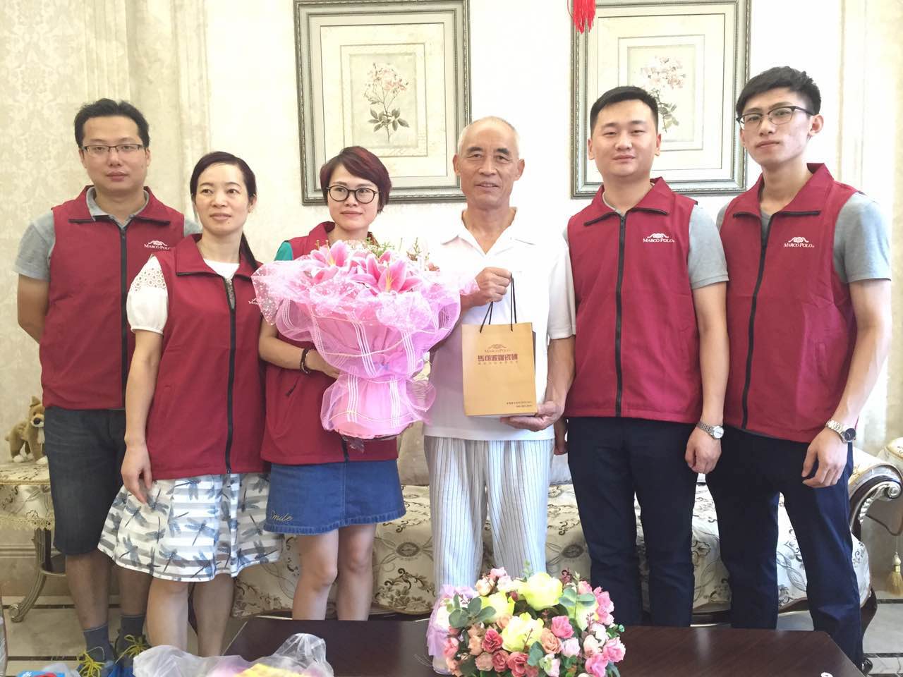 7月22日,马可波罗瓷砖老客户回访活动的第二站——南京站正式启动,虽然南京今天高温酷热,但南京马可波罗瓷砖总经理汤国珉依然亲自带领着工作人员顶着高温、带着诚意去到客户家中,给客户送去关怀。