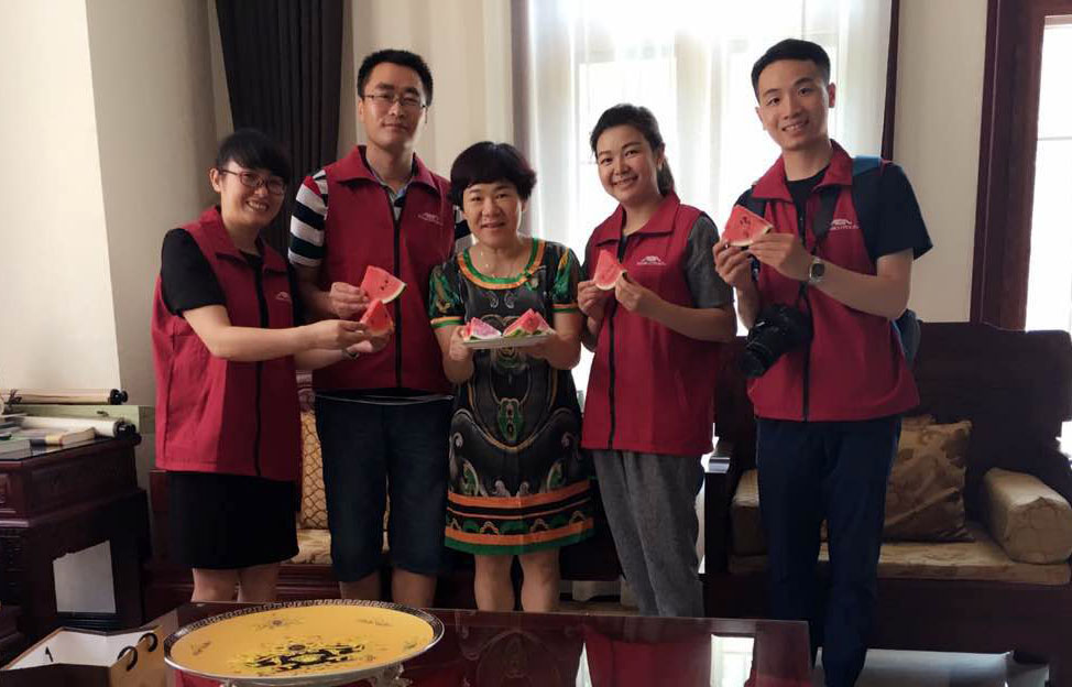 保洁过后,大家在一起愉快地交流。工作人员给阿姨讲了一些在日常清洁中省时省力的小妙招,而叔叔阿姨则兴致勃勃地沏了茶、开心地切了西瓜接待我们马可波罗瓷砖的工作人员。