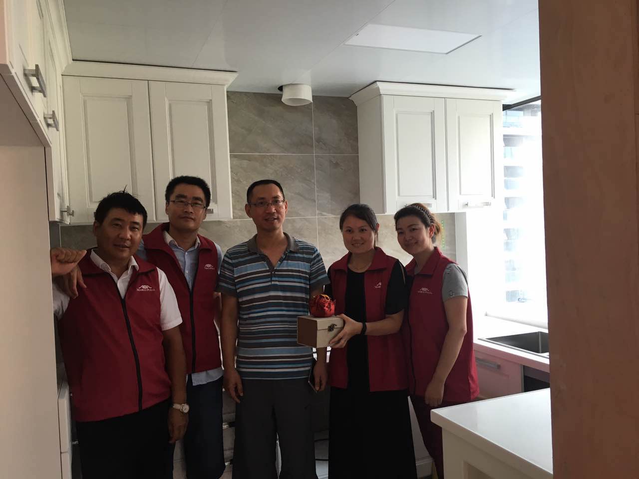 接下来,一行人去到利二花苑小区。在做回访的过程中,客户热情地与我们马可波罗瓷砖的工作人员交谈,客户说装修耗费了很多精力,非常满意马可波罗瓷砖铺贴出来的效果。