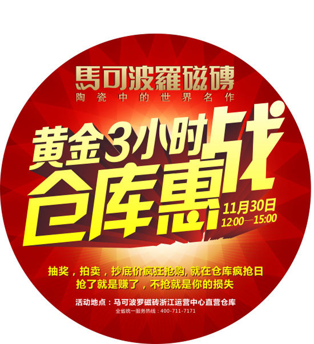 【疯抢地点】:马可波罗磁砖浙江运营中心直营仓库