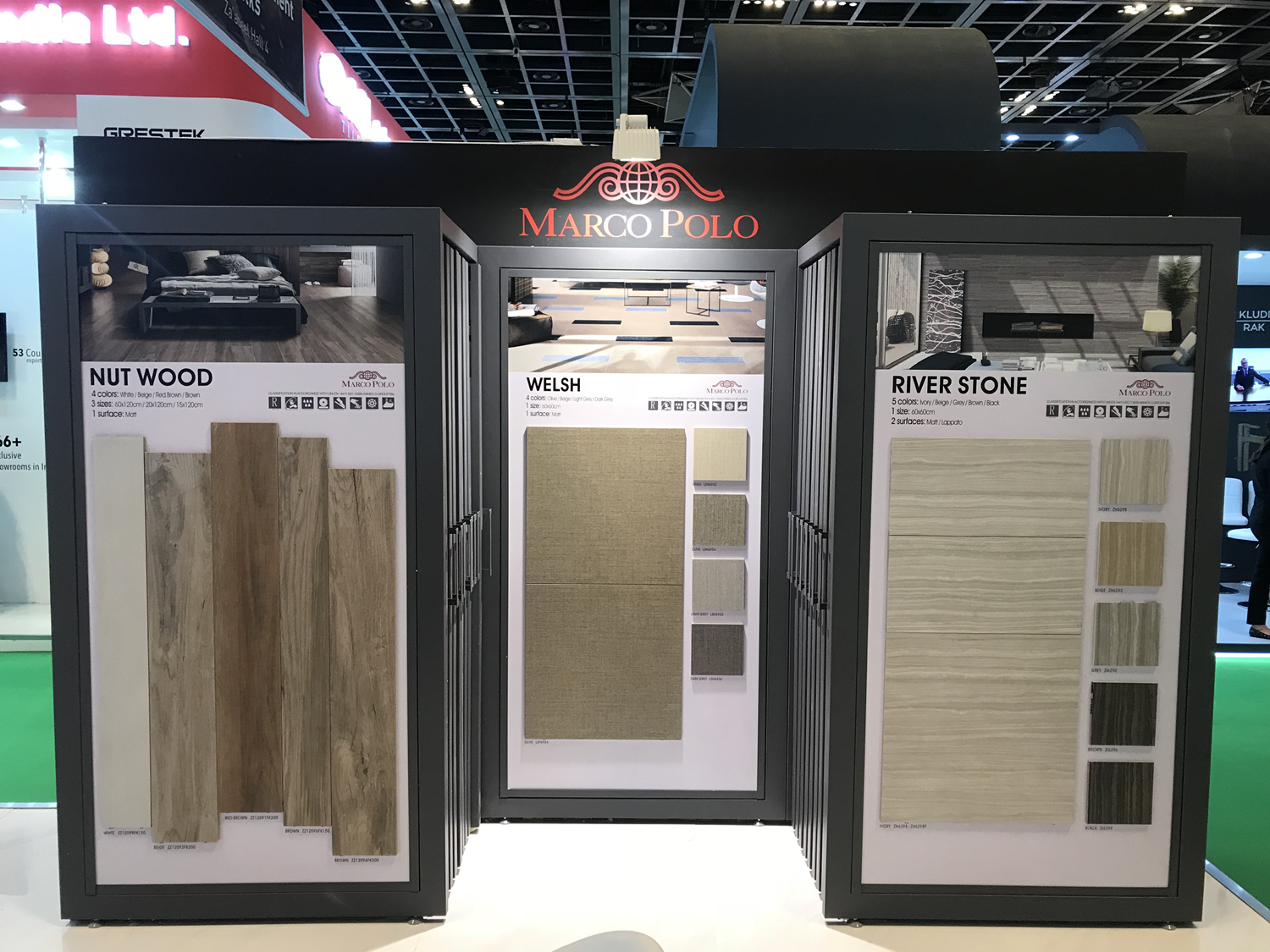 中东迪拜五大行业展(THE BIG 5)始办于1980年,是中东北非地区最具影响力、最大型的建筑、建材及服务类展览会。此次展会共有60个国家、3500家企业参展,其展出内容皆为当今建筑领域的最新技术和产品。作为连续7年参加中东五大行业展的中国陶瓷品牌,马可波罗瓷砖每一年都为中东市场带来不一样的新品盛宴,彰显"中国制造"的实力与品质。