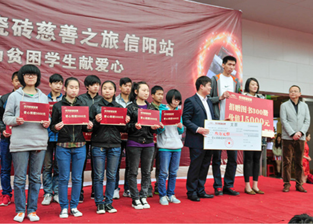 马可波罗瓷砖此次活动得到了社会各界的高度关注,在信阳的影响力也可以说是前所未有的。河南省文联的领导得知这一消息,甚至主动要求参与并提供价值15000元的图书300册到马可波罗慈善基金,一同捐赠给河南省宋庆龄慈善基金。他们也正在用自己的实际行动为信阳的慈善事业出一份力!马可波罗瓷砖慈善之旅正是希望通过自身的行动,带动大家对贫困中学生的爱心支持!