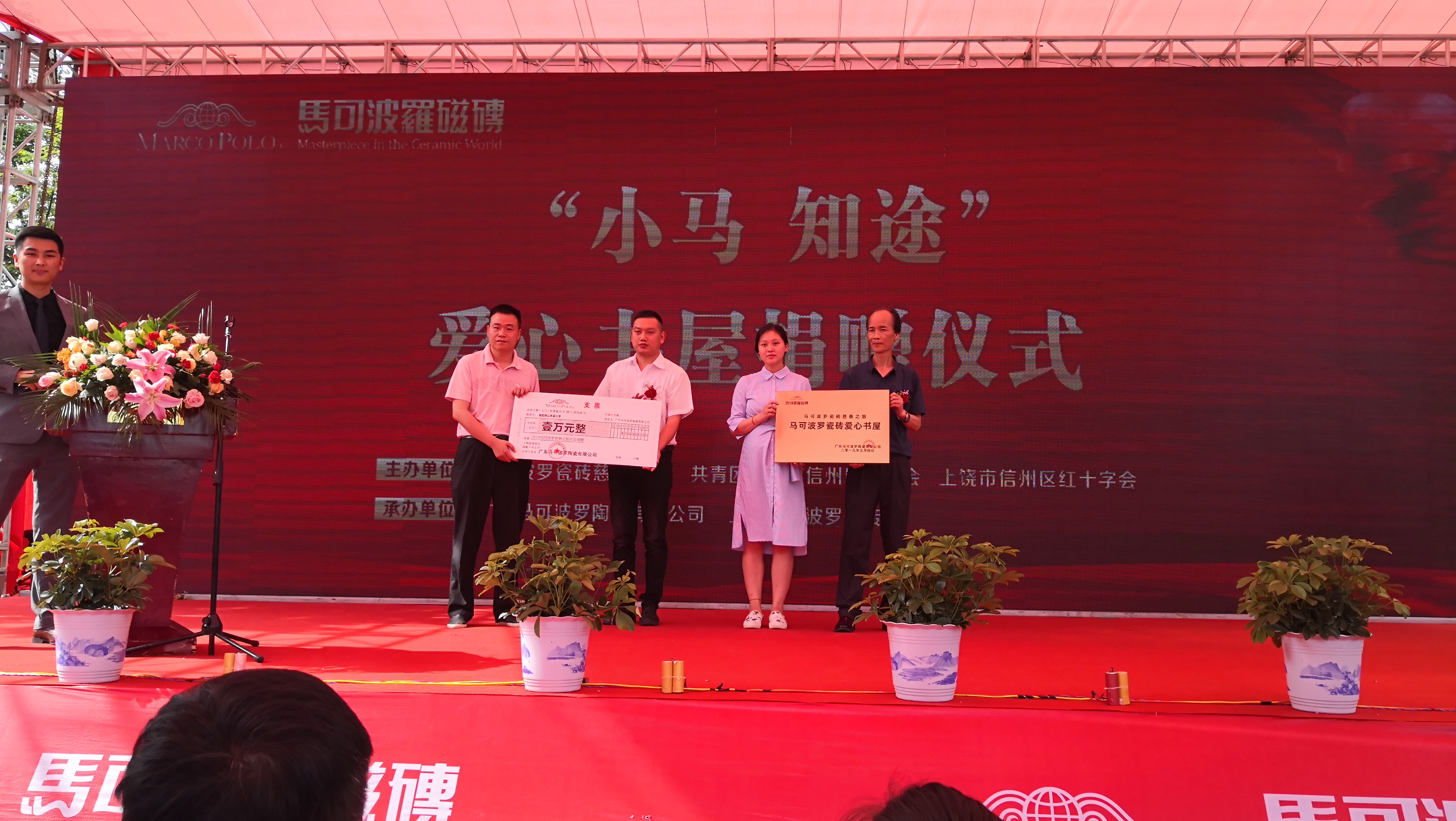 5月4日青年节,上饶马可波罗瓷砖携手上饶市共青团信州区委、红十字会开启“筑梦行动”,为当地数十名贫困学生提供助学善款,并为朝阳镇狮山希望小学捐赠图书、建立爱心书屋,助力莘莘学子的飞扬青春梦。