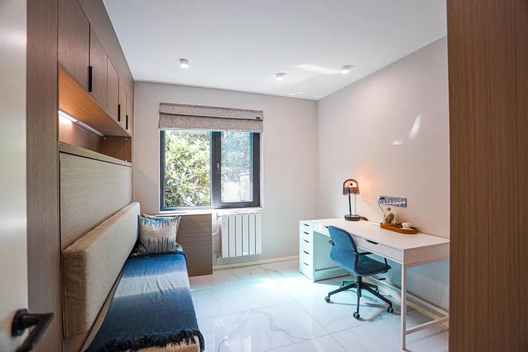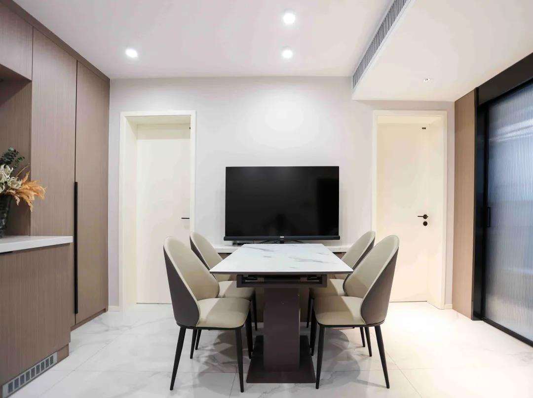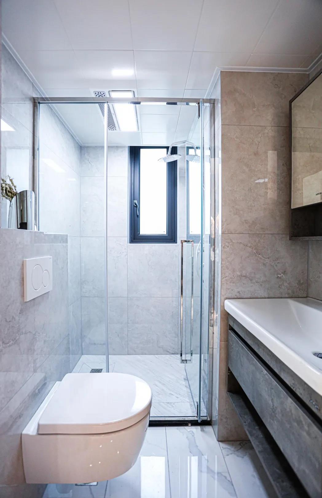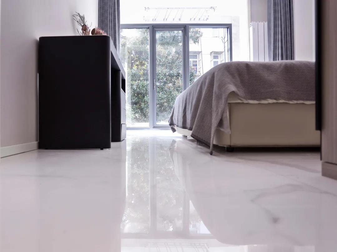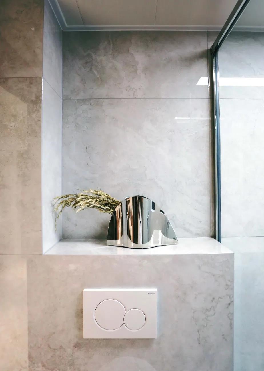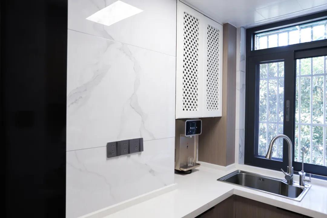 室内墙地大面积使用马可波罗瓷砖冰川鱼肚白,纯净白色包裹,提升了空间亮度和纵深感。