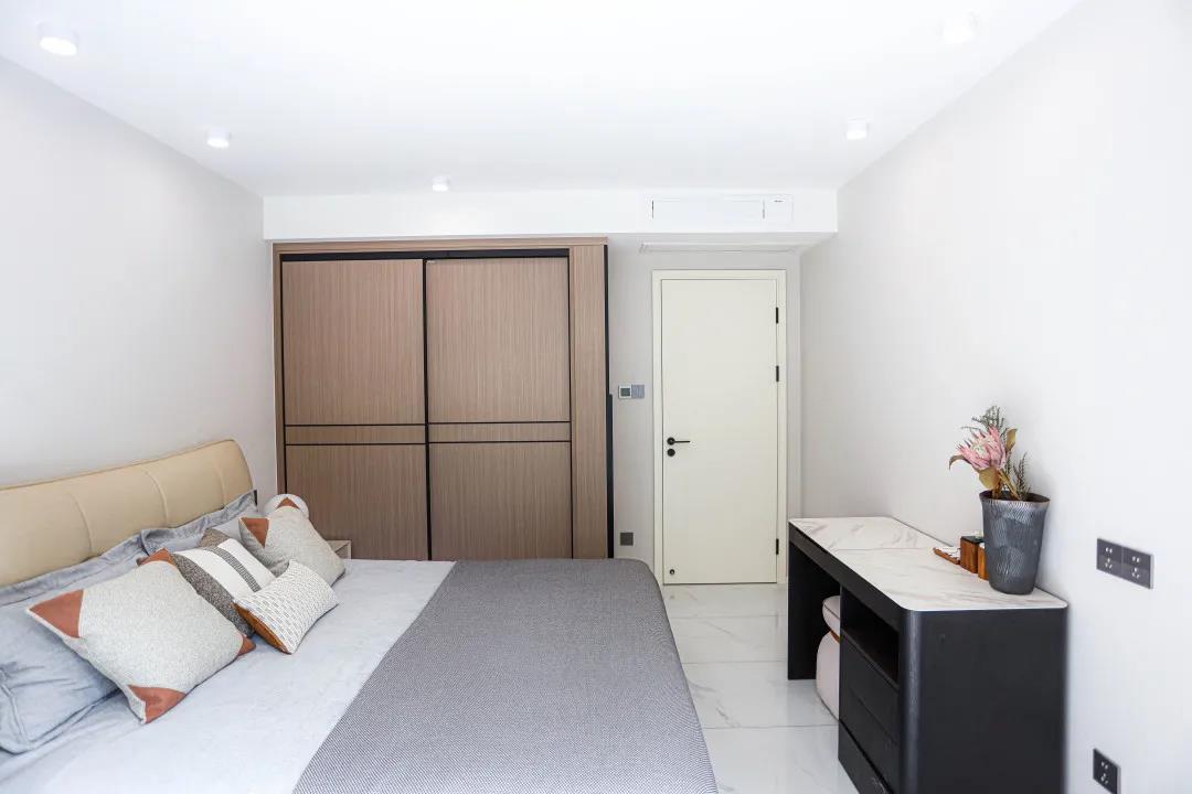 主卧阳台墙面使用月光石,如同宁静月光洒落,更显暖意融融。
