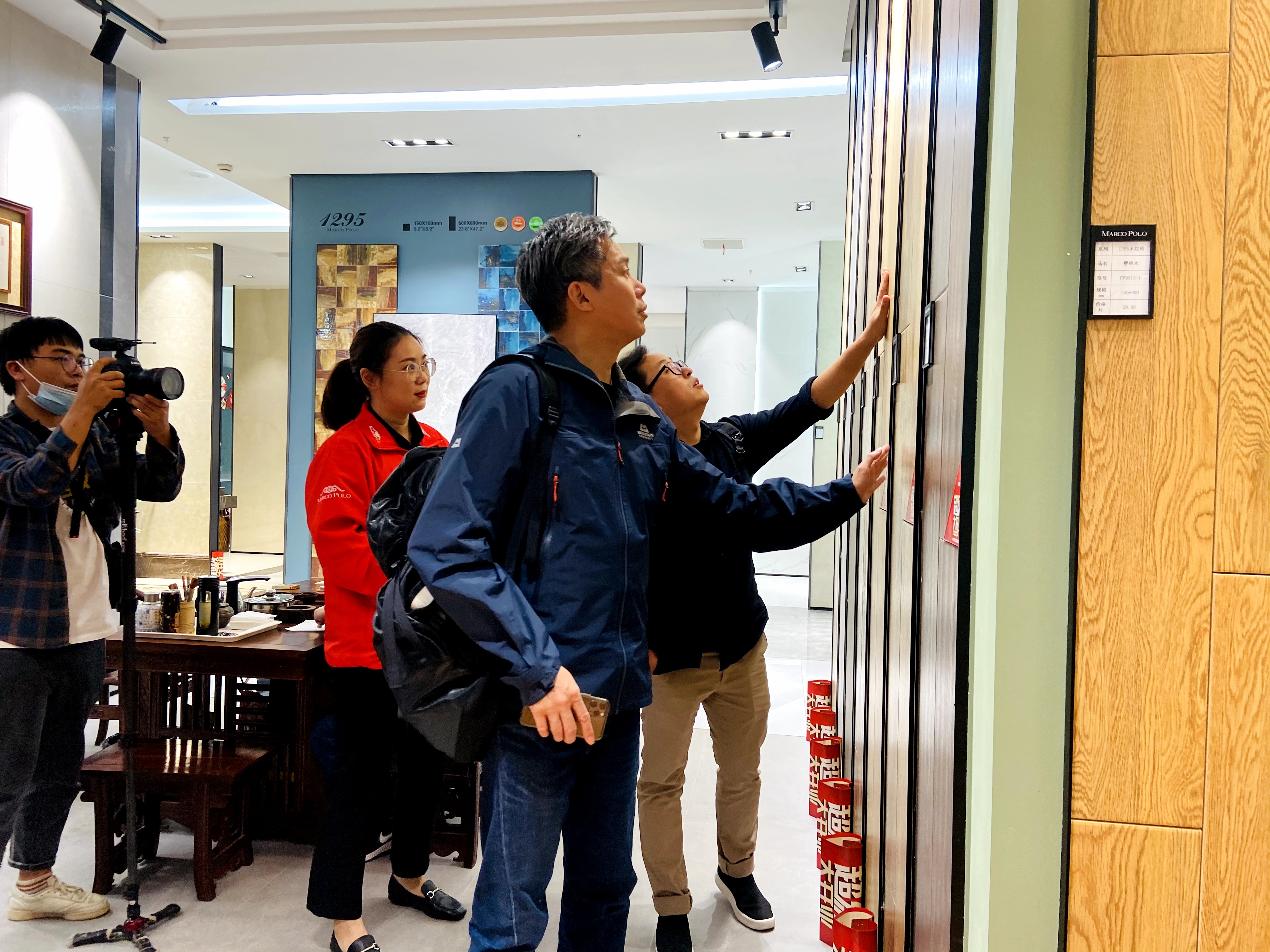 ▲ 设计师麦国强进店体验马可波罗瓷砖卓越品质