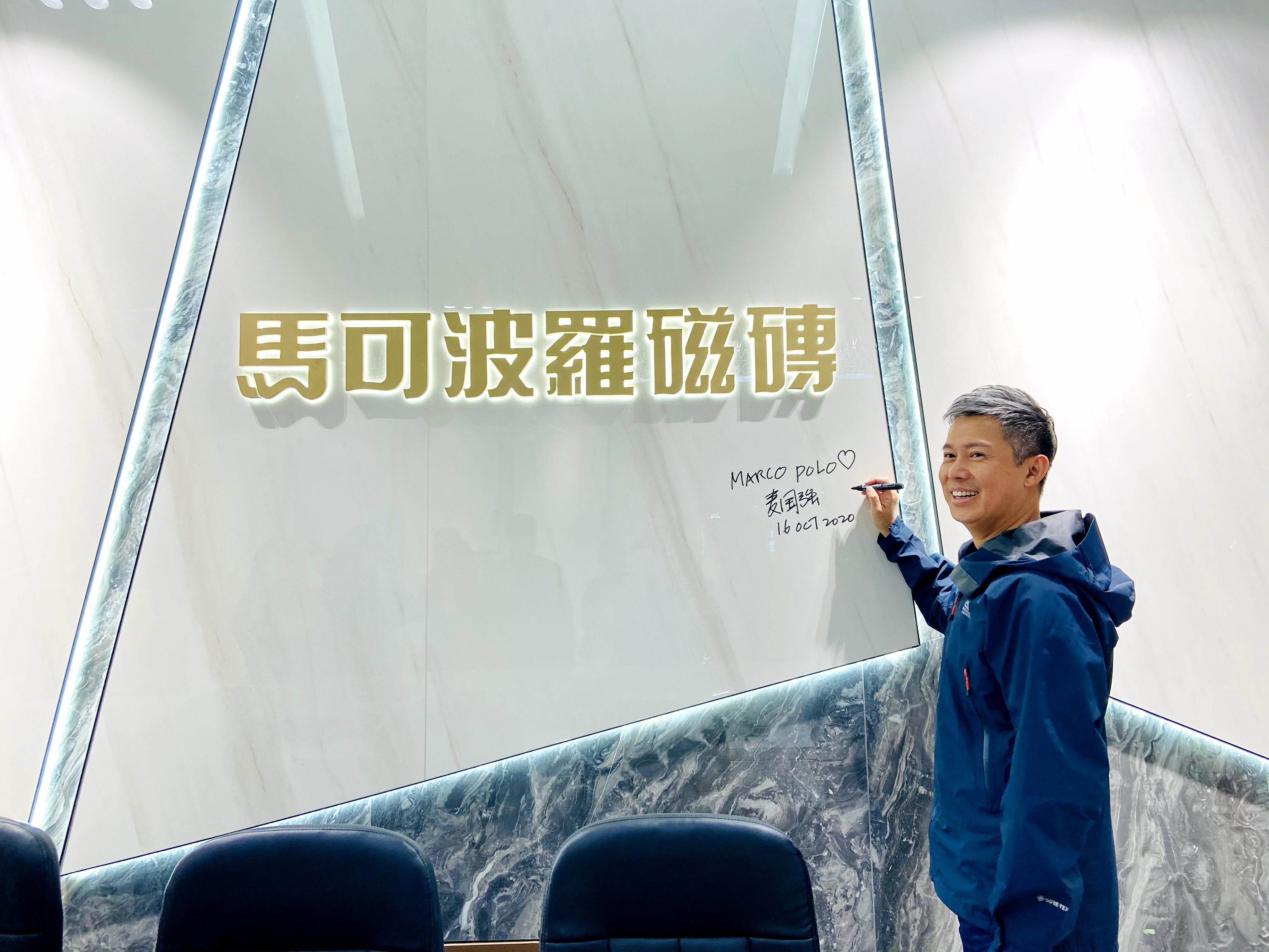 ▲ 马可波罗瓷砖的卓越品质、创新科技赢得了设计师麦国强的点赞,并签名留念