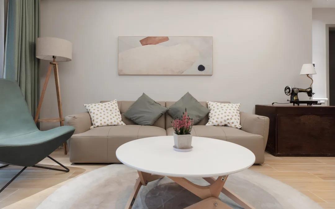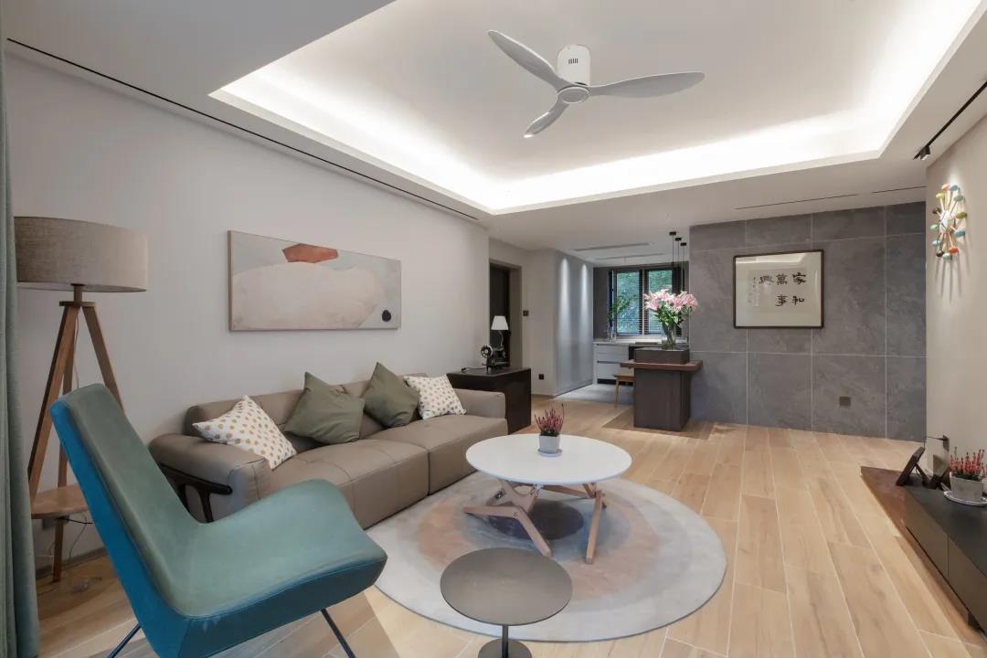 墙面铺贴马可波罗瓷砖米希尔,海浪般纹理,为客厅空间增添自然舒适气息。