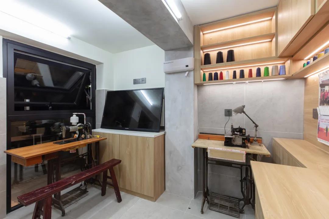 裁缝铺杂物较多,工作区域较为拥挤局促。