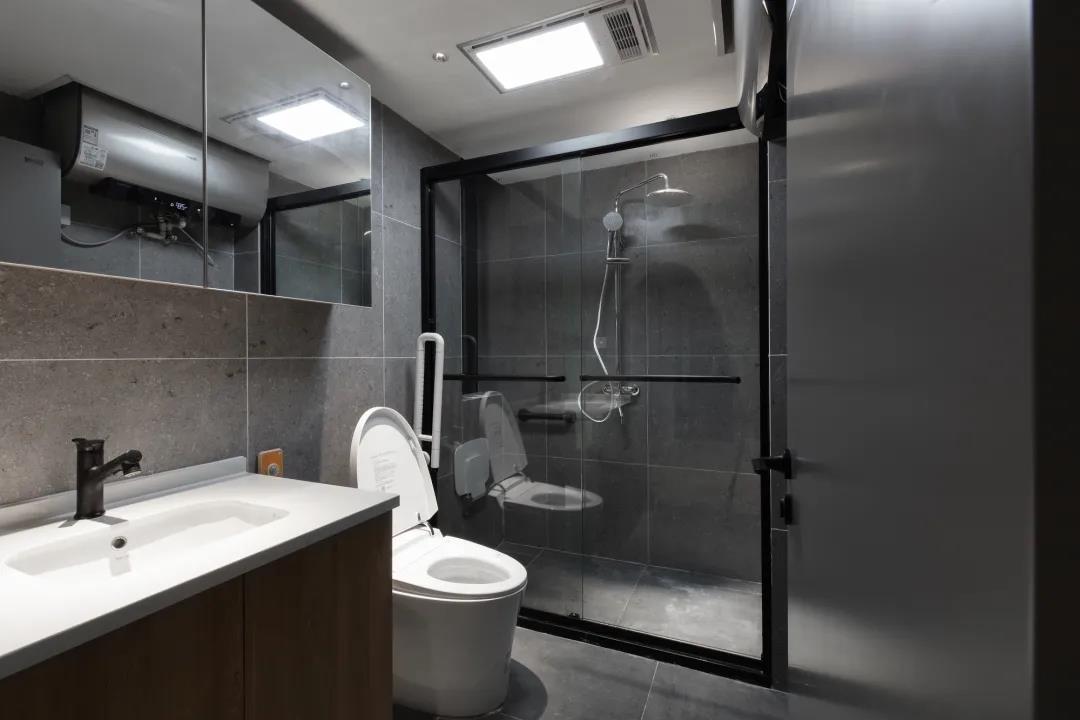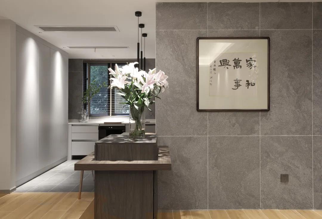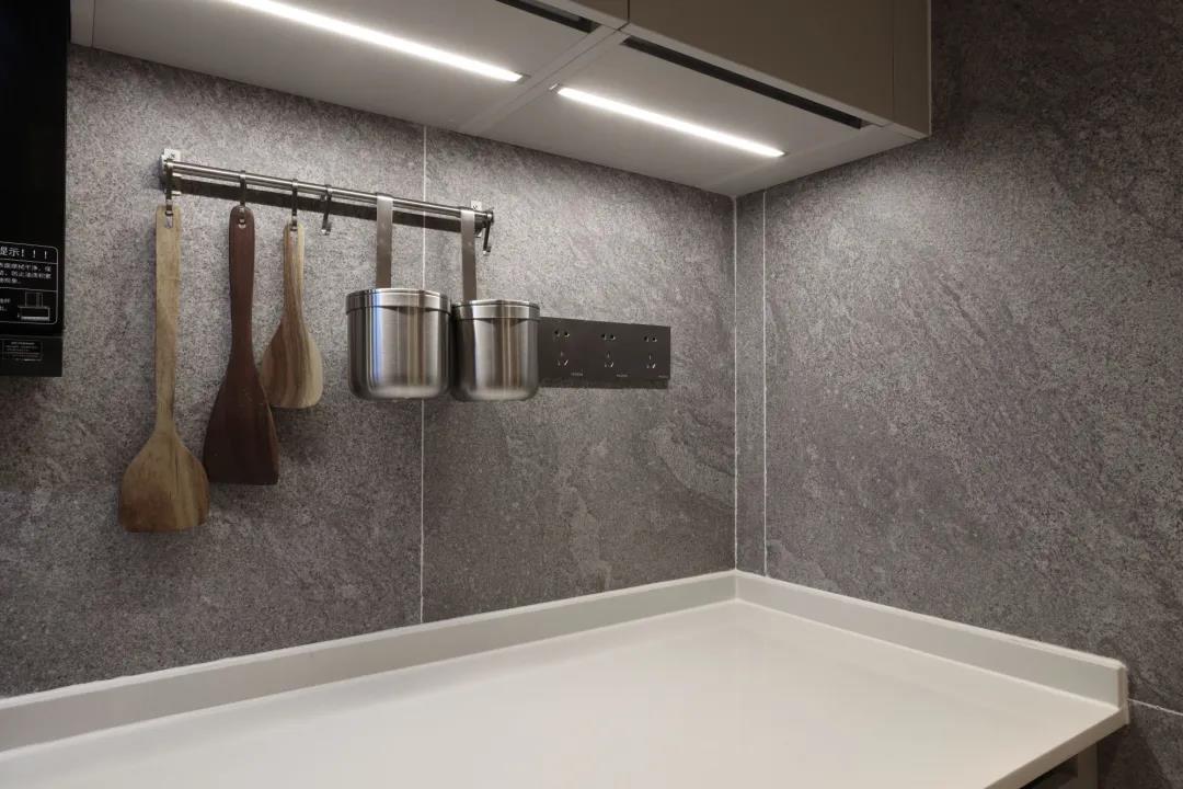 墙面使用马可波罗瓷砖莫奈花园,苍穹灰尽显云展云舒的人生意境,烘托舒适空间氛围。