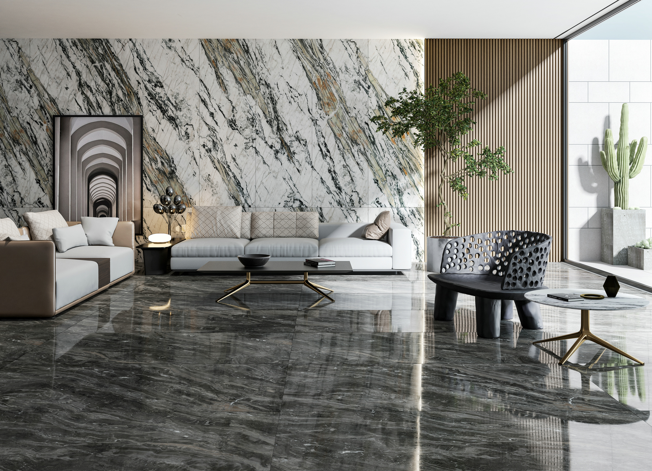在巴西海堡,有着最美丽的火山岛——特林达岛,源于此处的巴西山水绿气势磅礴、水墨淋漓的肌理如山一般屹立巍峨,又如水一般细流无声。马可波罗巴西山水绿刚柔并济,将大自然山与水的韵律融入其中,勾勒出空间的别致与品位,透露出返璞归真、内心满足的生活态度。