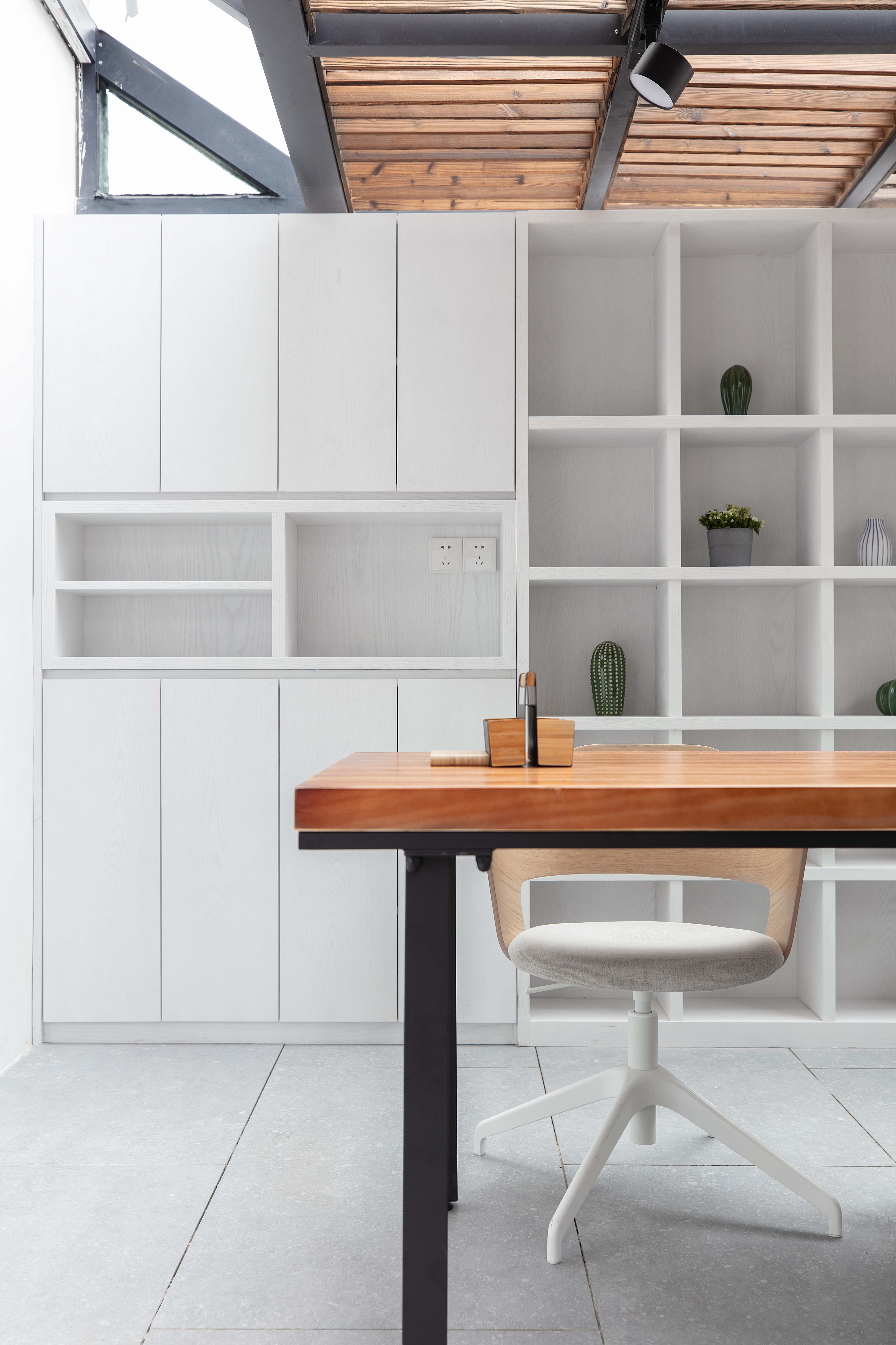 地面使用马可波罗瓷砖斯塔弗,有着玄武岩的细腻孔洞效果,还原天然纹理。墙地面经典白灰搭配,更显简约风雅。