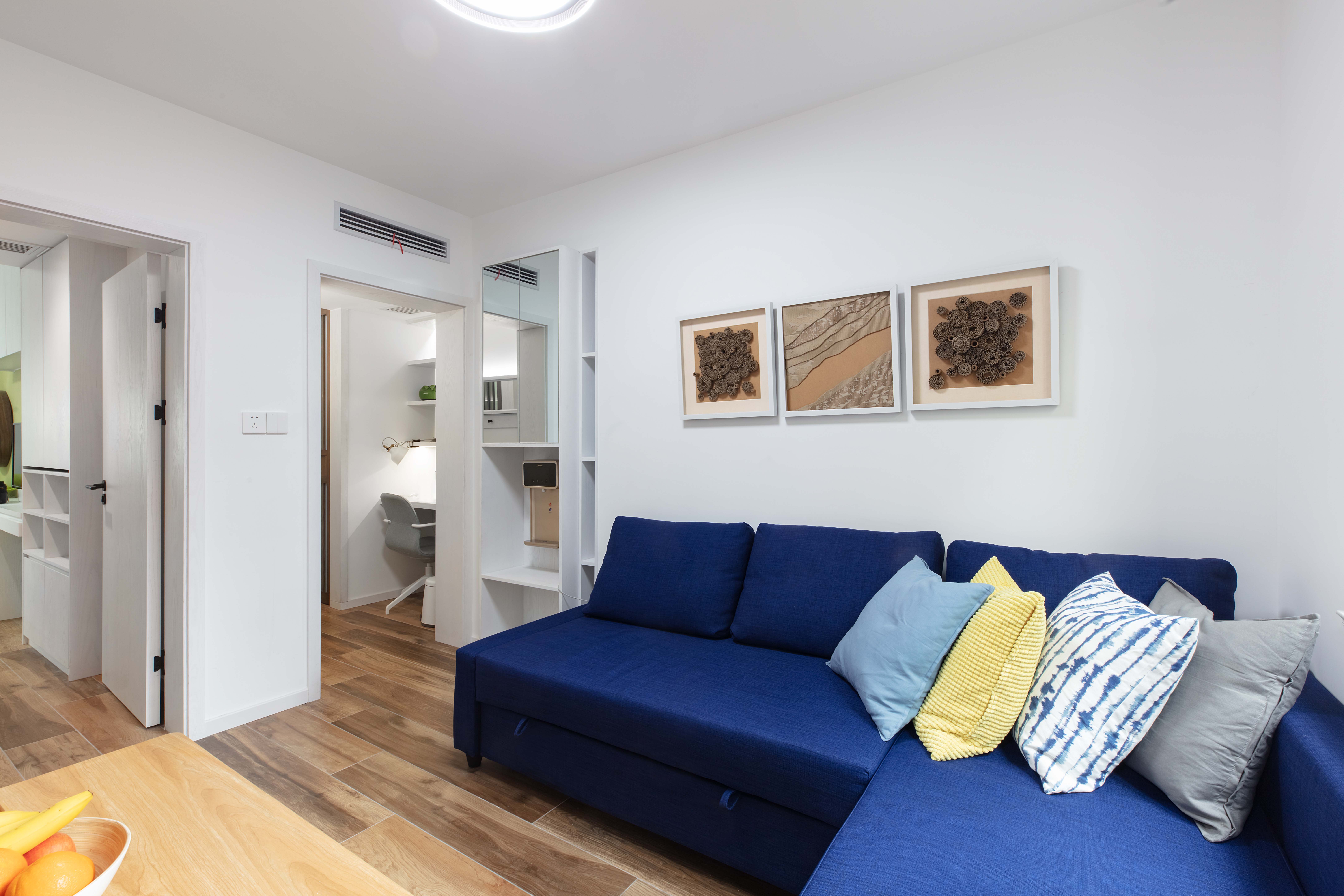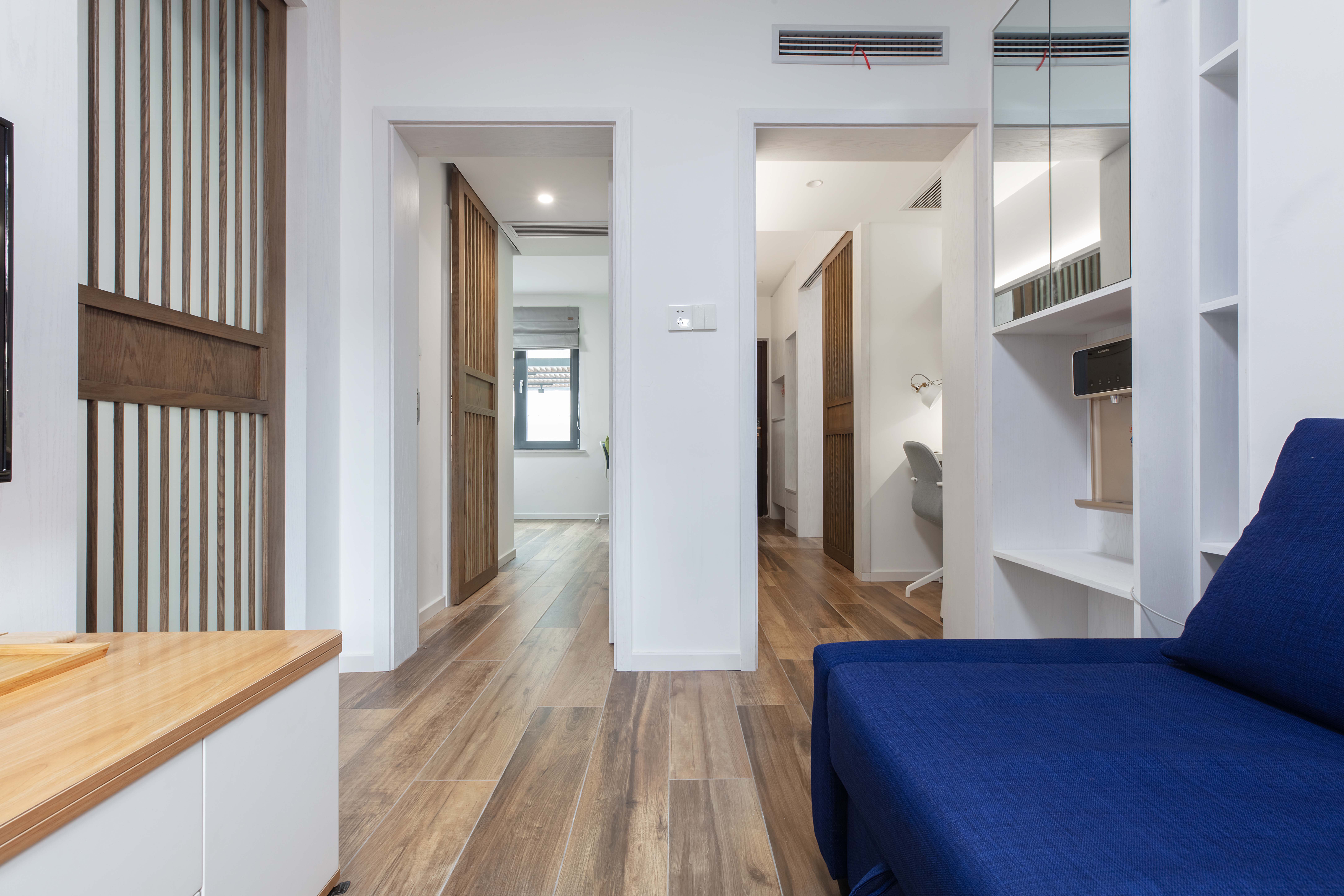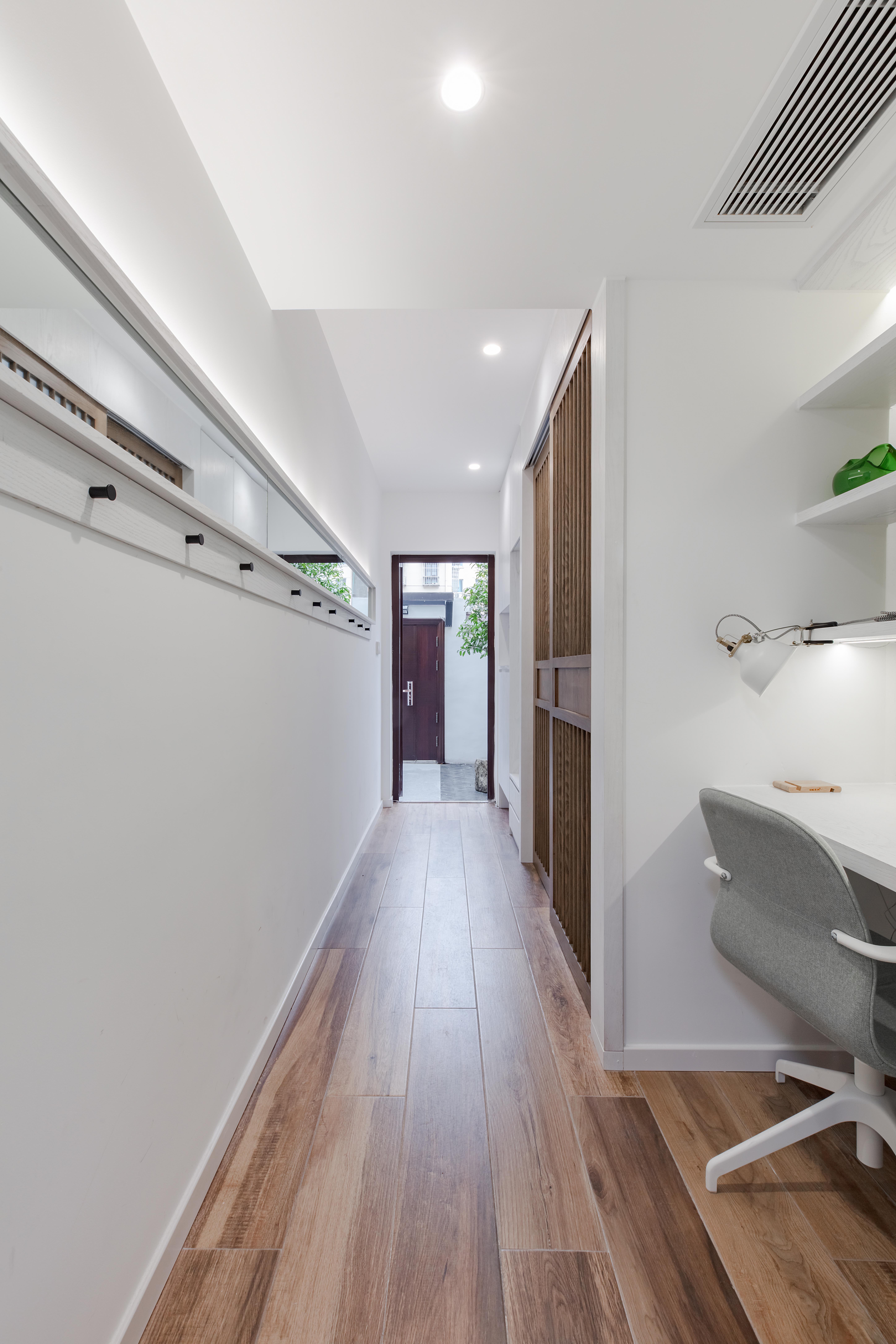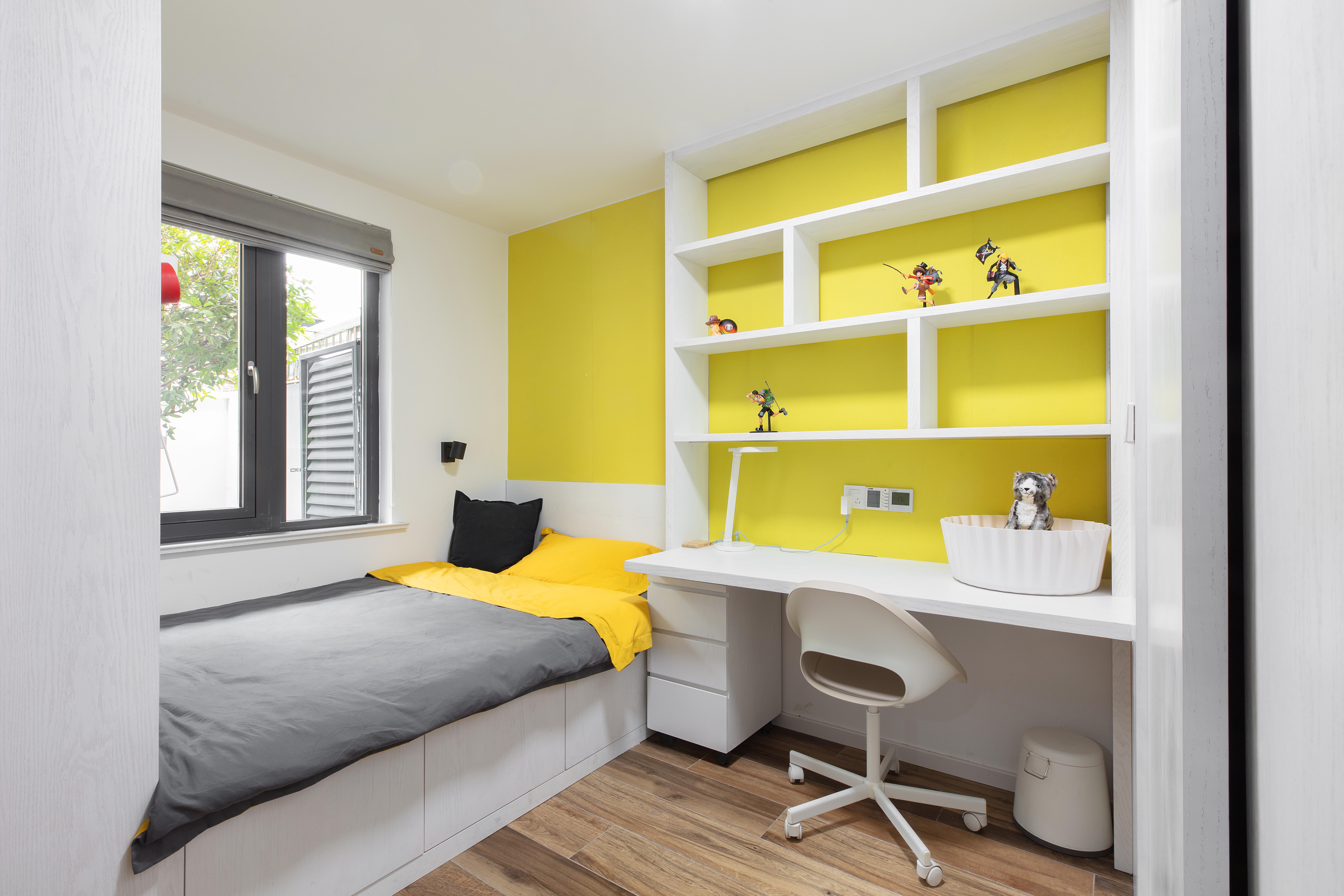 次卧隔出过道,被调整为一个相对独立和注重隐私的空间。