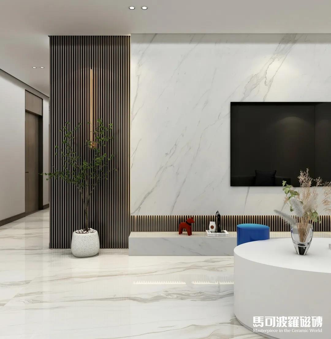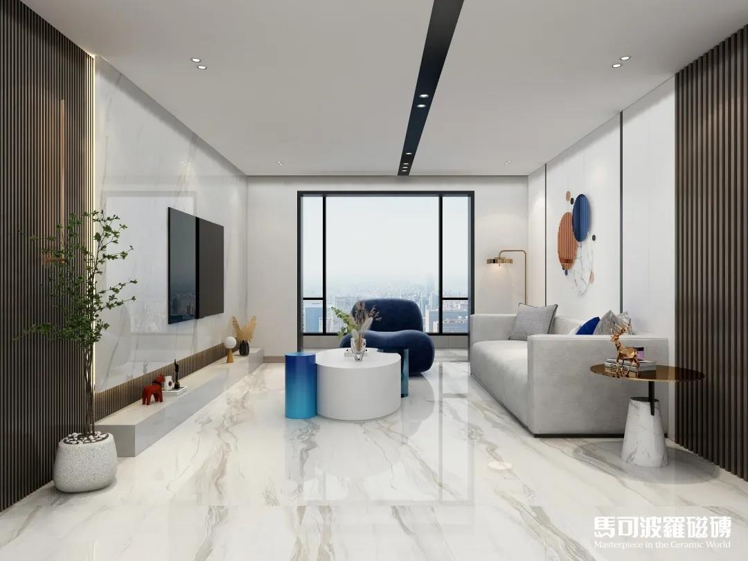 电视背景墙使用马可波罗经典鱼肚白,细腻清秀的连纹纹理融入简约优雅的生活意境,让每一天都心旷神怡。