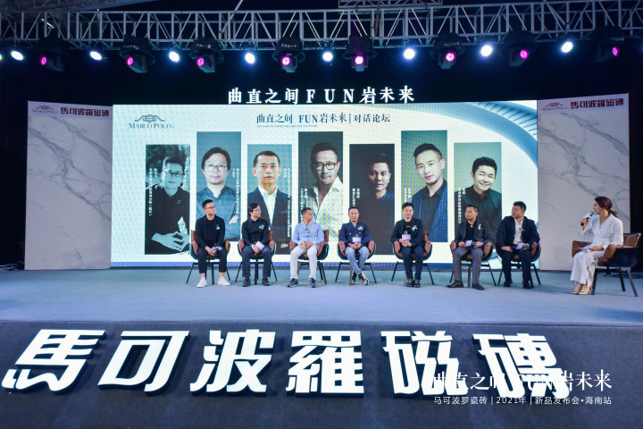 随后,CDI设计师事务所创作总监陈方晓,唯美集团营销中心副总经理、马可波罗1295及大板事业部总经理黄焱斌以及海南设计大咖吴晓波、张华灌、成炜、黄忠平、阮飞飞等七位嘉宾开展论坛峰会。针对2021年设计流行趋势探讨,围绕设计风格、新趋势新材料、时下主流的材料搭配设计碰撞火花,开展“曲直之间,FUN岩未来”的主题峰会,思想交流、灵感碰撞,为大家带来一场视听盛宴。