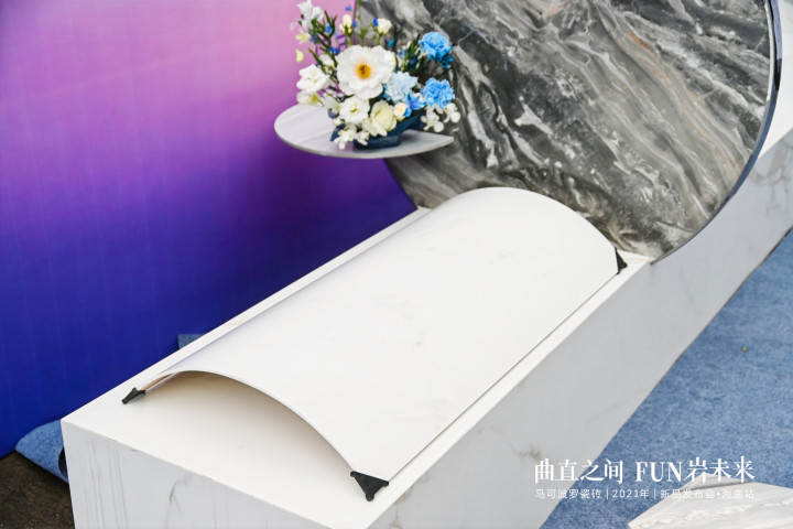 此次发布会现场,还特邀CDI设计师事务所创作总监陈方晓作设计分享,他提出“直线属于过去,曲线迎向未来”这一理念,并坚信马可波罗曲面岩板的推出与应用将引领家居建材行业的时尚潮流。