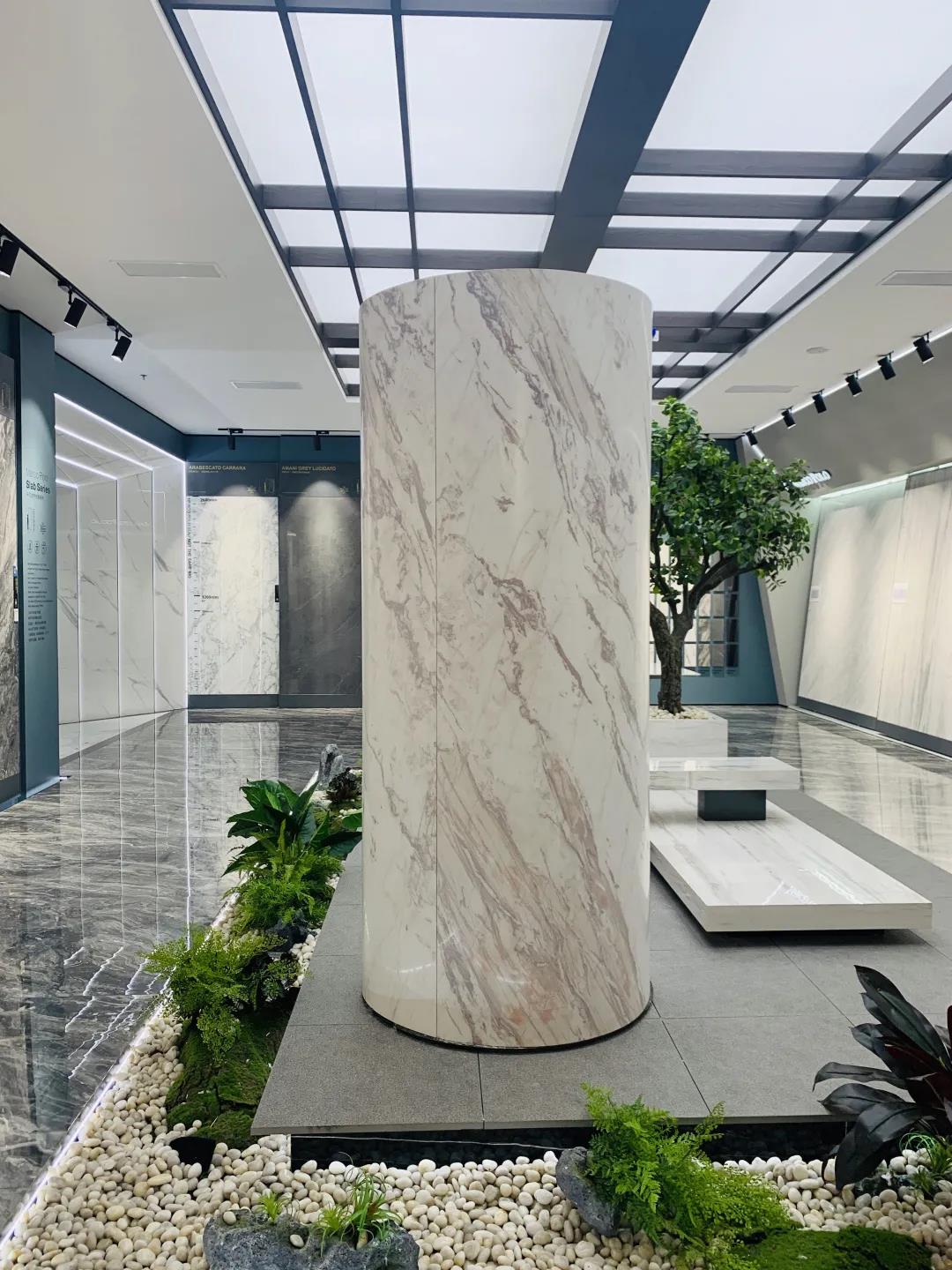 马可波罗自主研发的曲面岩板,最大弯曲幅度可达到120度,圆形穹顶、回廊、弧形背景墙、圆包柱、别墅旋转楼梯,全空间运用,满足更多功能性的设计需求,赋予未来家居生活更多可能。