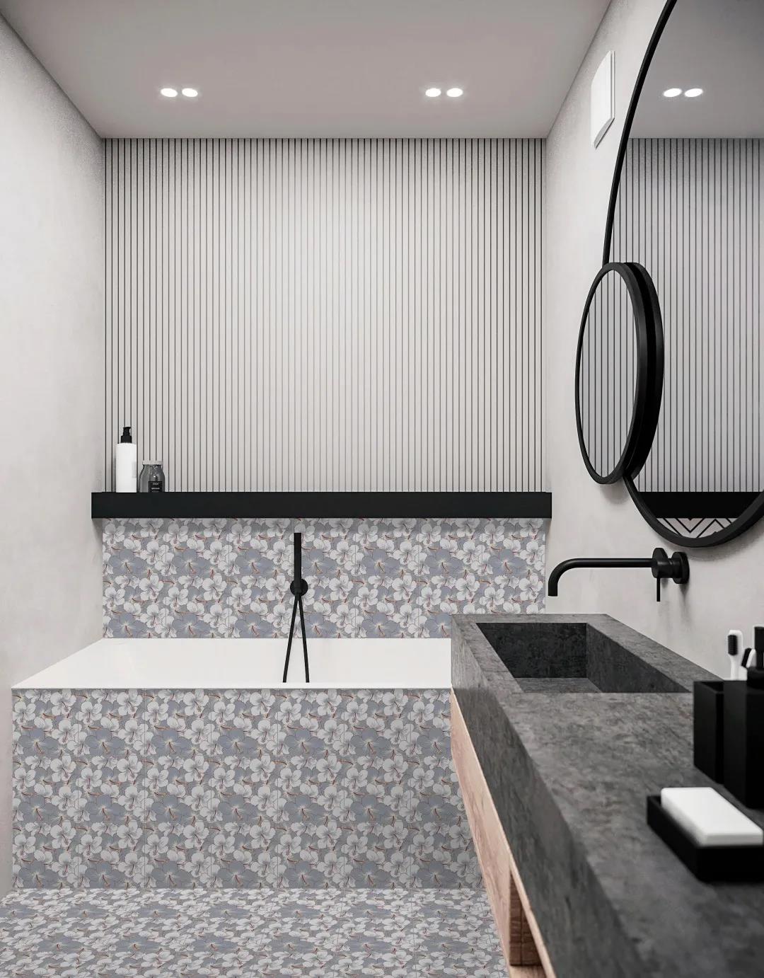 2021年,马可波罗瓷砖推出新品配件木槿芙蓉。一处宁静舒适的家,与纤细温雅的木槿芙蓉相遇,便在此刻留下了沁人心脾的芬芳。灰白色调素雅搭配绽放温馨暖意,心间亦是美好满盈。
