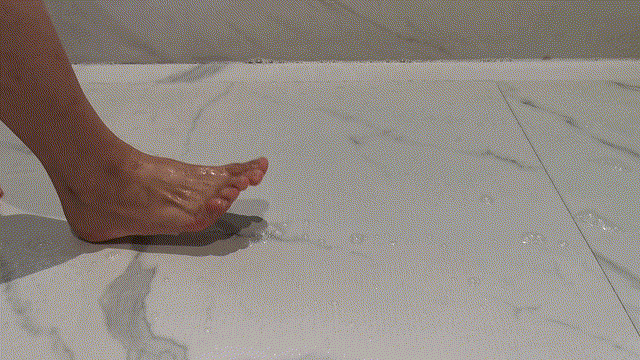 卫生间考虑到家中有儿童的使用安全问题,地面选用了凹凸效果的防滑砖,即使在铺满沐浴露的水上,也可以充分防滑。