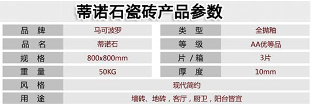 编辑总结:马可波罗全抛釉瓷砖蒂诺石采用进口釉料,高精工艺,打造五星级防污性能,抗污能力极强,便于日常清洁。每一块瓷砖表面都经过防水处理,沾水后变涩不滑,充分保护您的安全,因此也是客厅、厨房、卫生间的佳选。