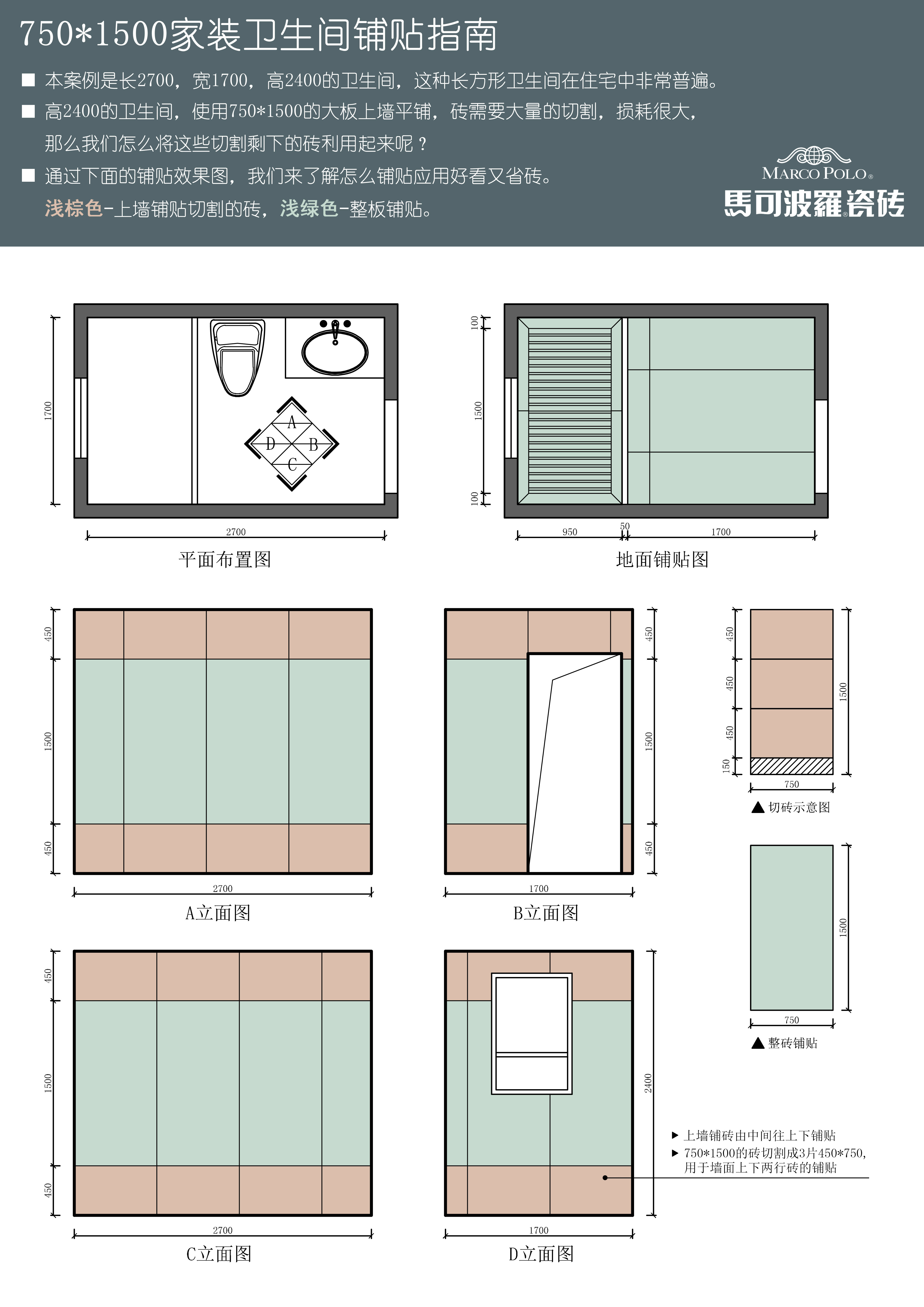 中间750×1500mm+上下750×450mm铺贴