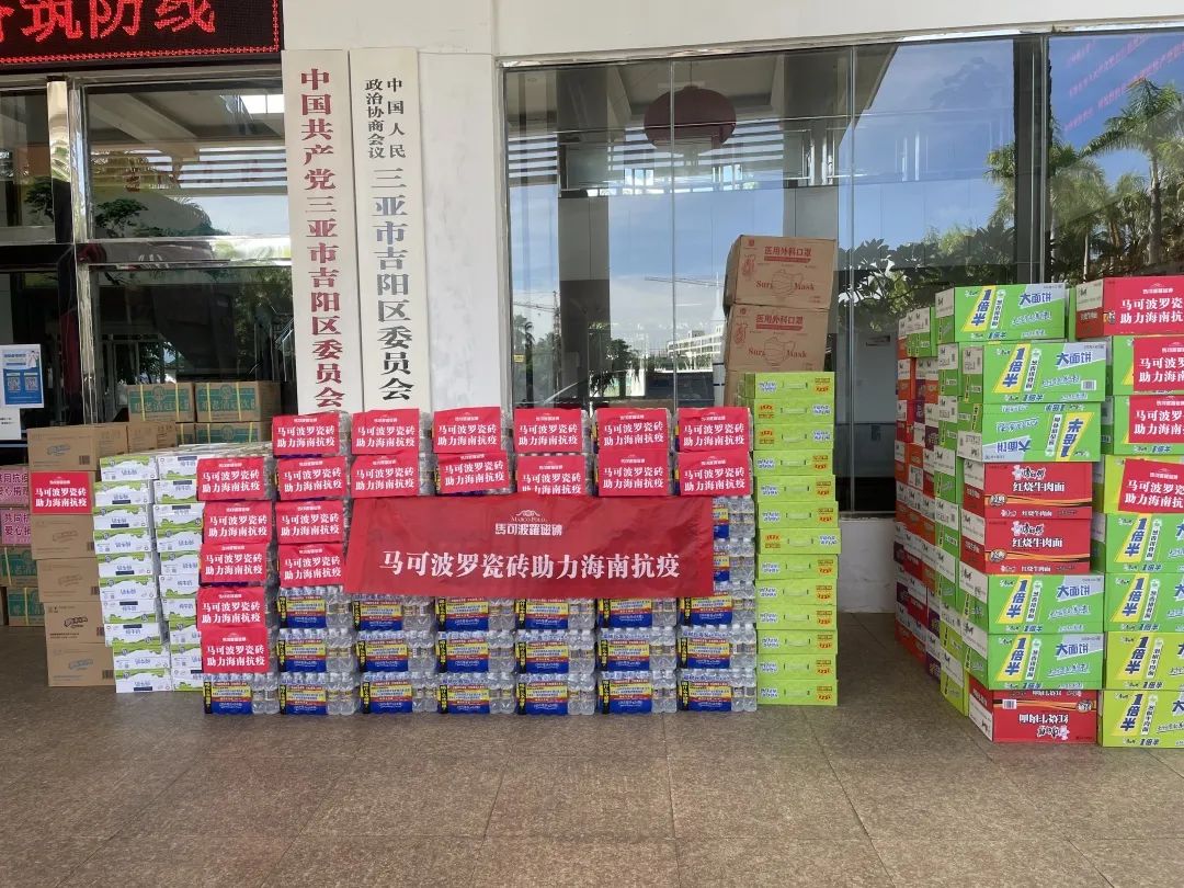 马可波罗瓷砖时刻关注疫情动态,第一时间与三亚天涯区慈善会取得联系,得知当前物资紧缺、急需援助,联合东莞市慈善会,迅速成立专项小组,由海南马可波罗瓷砖总经理王三付亲自带队采购抗疫物资,及时发往一线,助力海南抗疫。