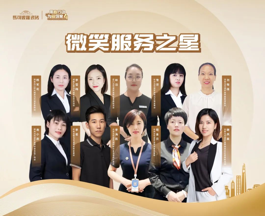 同时,马可波罗瓷砖坚持以微笑服务装点幸福,传递品牌温度。每年马可波罗瓷砖都会在全国终端发起“微笑服务之星”评选活动,甄选专业服务技能、微笑服务态度榜样,用微笑服务传递“为爱筑家”的真诚理念。