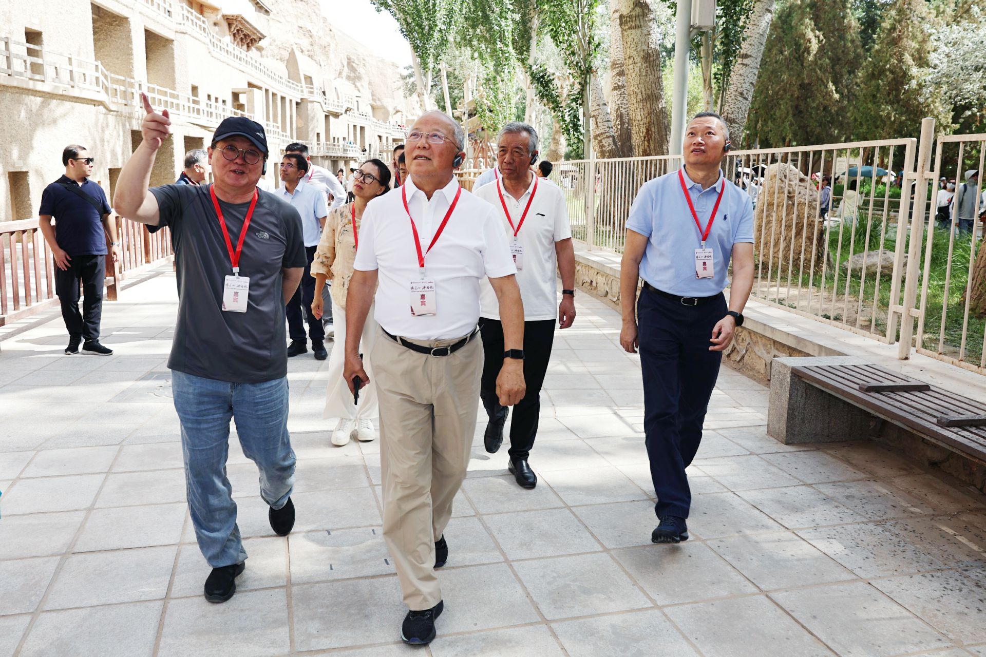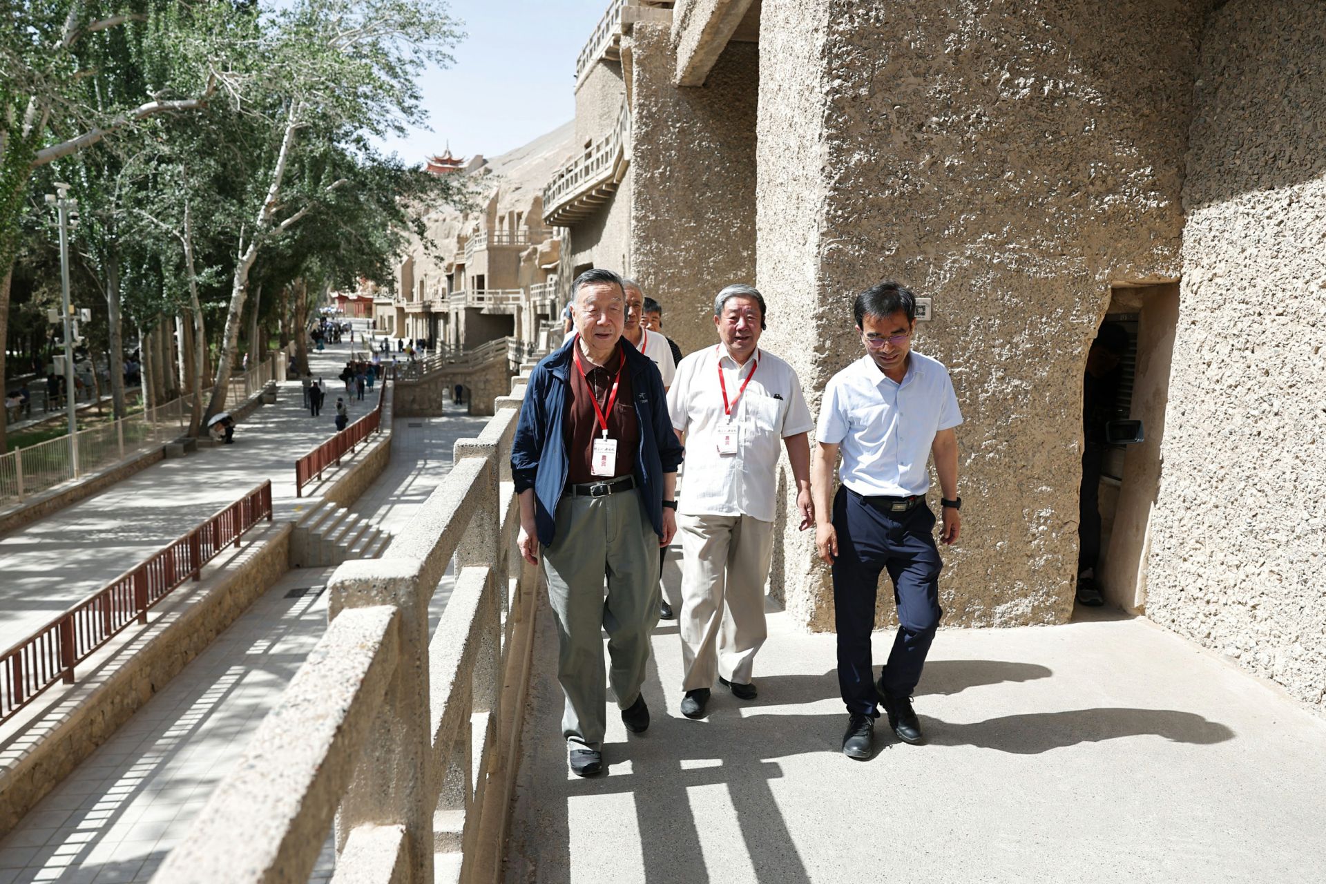 开幕仪式结束后,众多来自文化遗产、古建文物保护界的专家、学者们对敦煌莫高窟文化遗产保护公益项目进行考察调研,并开展石窟寺保护性窟檐专题学术交流活动。