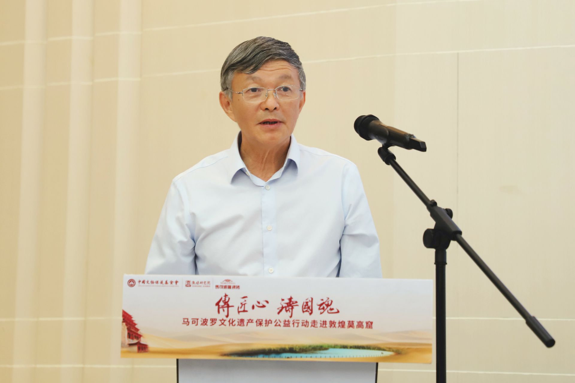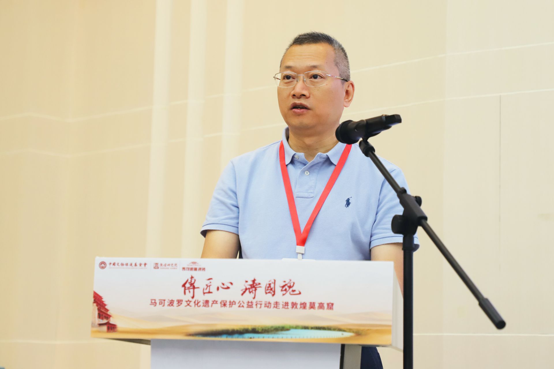 敦煌研究院院长苏伯民为活动致欢迎辞时表示,希望继续与中国文物保护基金会罗哲文基金管理委员会及马可波罗控股一道,共同推进文化遗产与人类文明的保护传承,并衷心祝愿“传匠心·铸国魂”马可波罗文化遗产保护公益行动走进敦煌莫高窟活动取得圆满成功。
