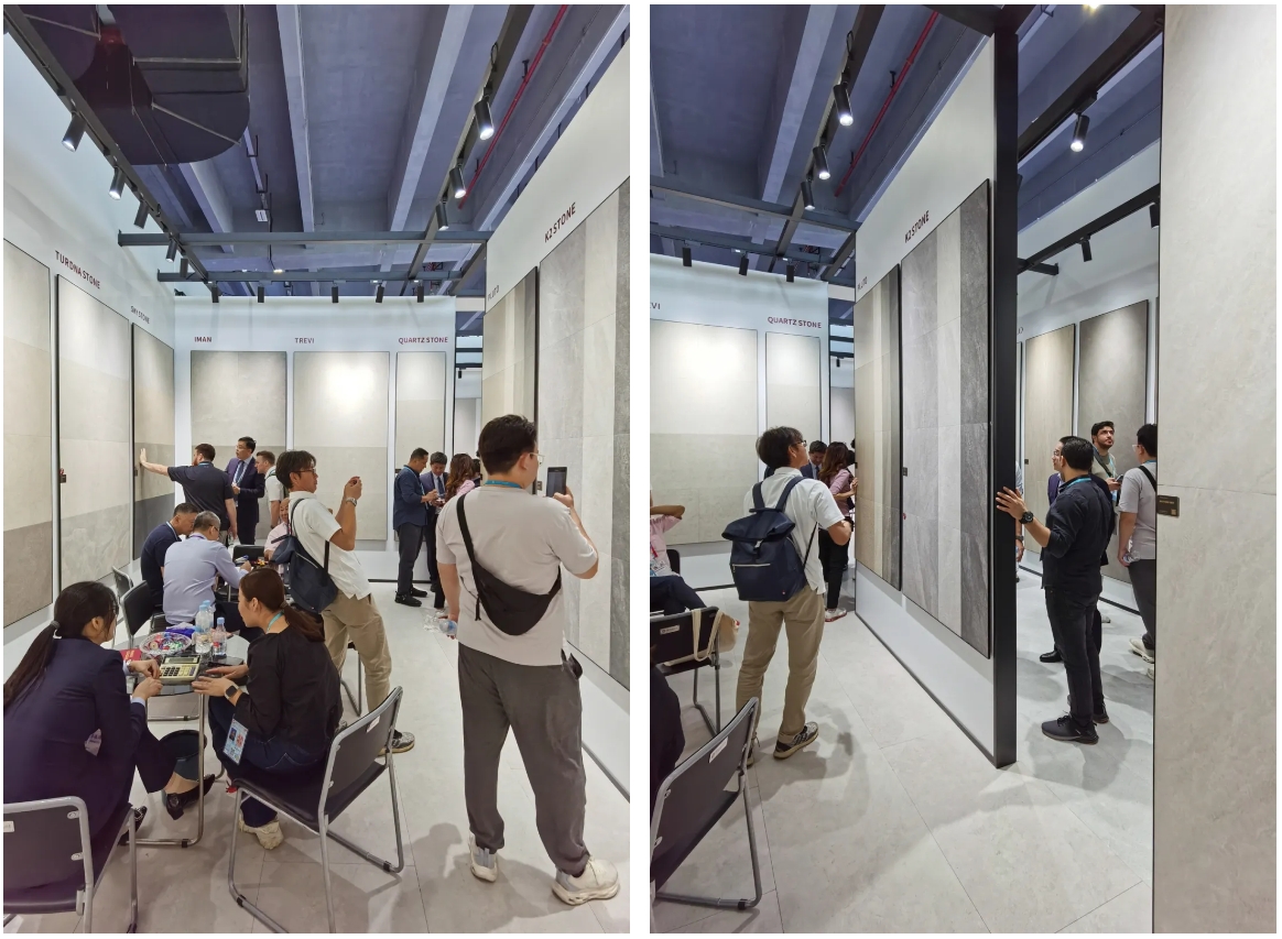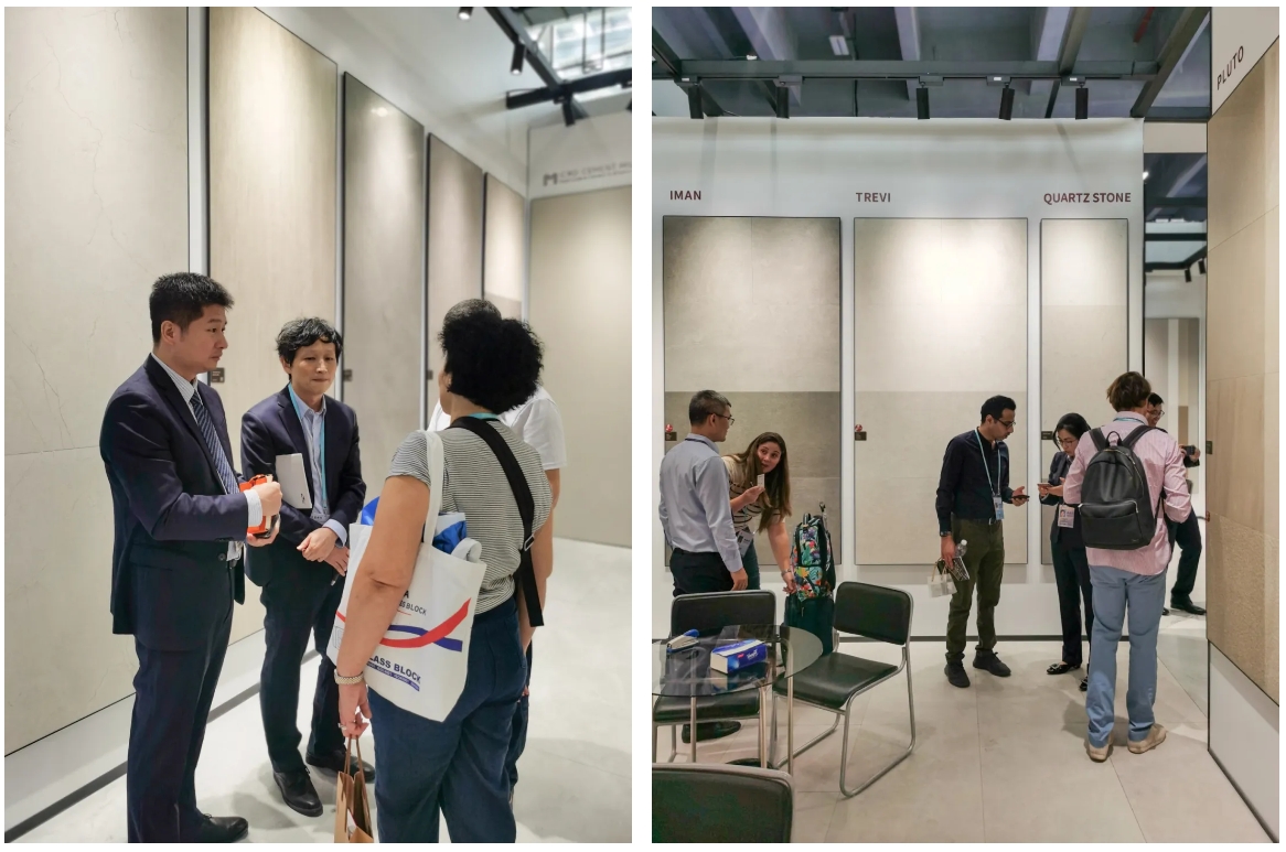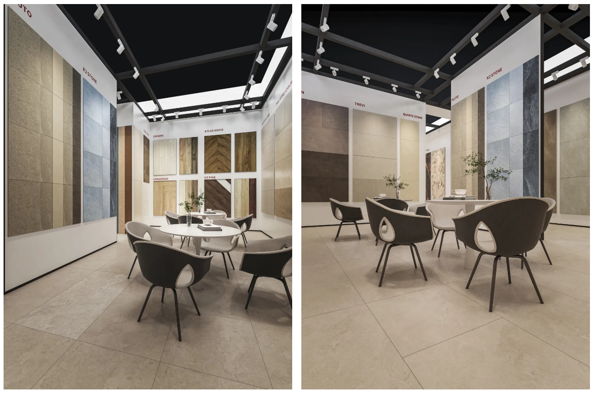 坚持以优质的产品和服务为消费者打造美好生活,本次广交会马可波罗瓷砖还带来了2024年真石3.0臻系列新品,还原天然材质的原生质感,在展厅中呈现出舒适自然的臻享视觉体验。