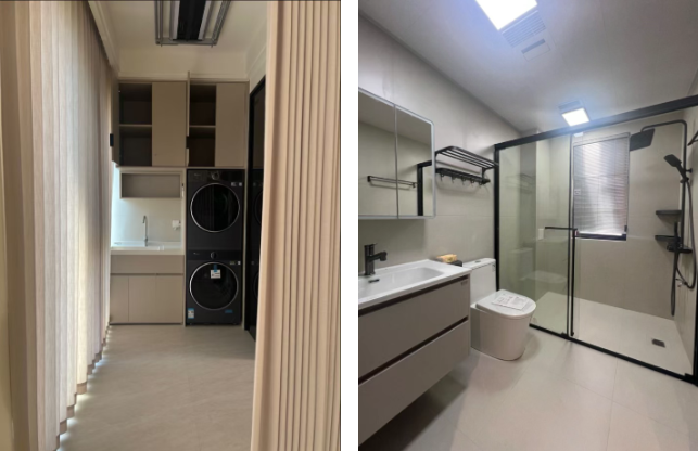 曹女士家中面积约200平米,客餐厅选用了900×1800mm的马可波罗希腊灰,厨房和洗衣房是600×1200mm的马可波罗冰川鱼肚白,卫生间则铺贴了600×1200mm的马可波罗云雅灰。整体铺贴空间质感统一协调,营造自然流畅、质感优雅的居住氛围。