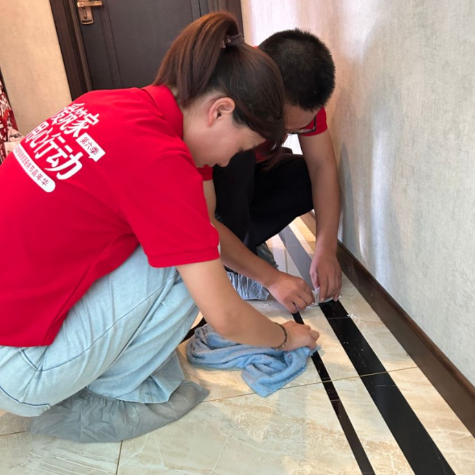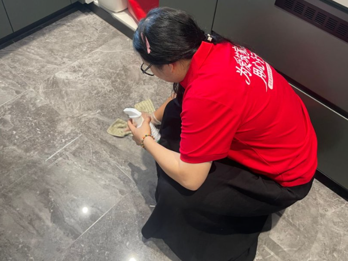 随后,回访服务团队为王女士家中进行了专业细致的瓷砖清洁服务,看到大家在炎热的天气中依然一丝不苟地忙碌着,汗水打湿了衣裳紧紧贴在背上,王女士深受触动:“这么热的天,你们还坚持上门服务,做得又仔细又认真,真是让我太感动了!”