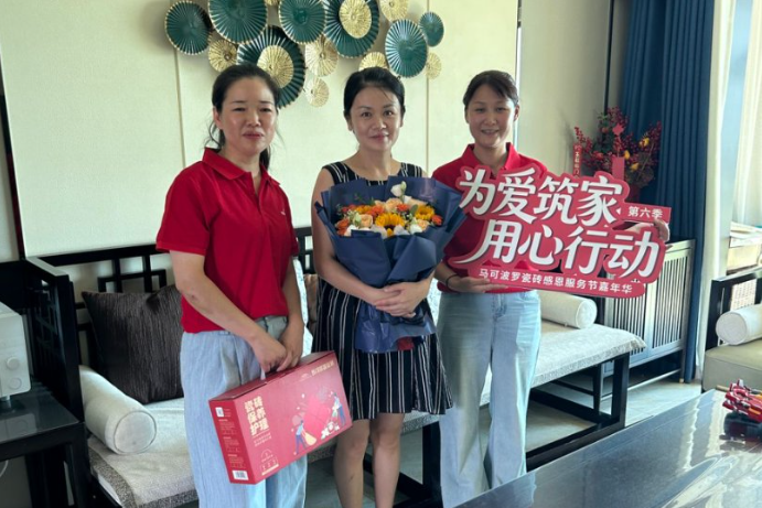 近日,蚌埠马可波罗瓷砖服务团队一行前往客户王女士家中,开展感恩服务节回访服务活动。作为品牌的“忠实粉丝”,王女士家中全屋均铺设了马可波罗瓷砖。