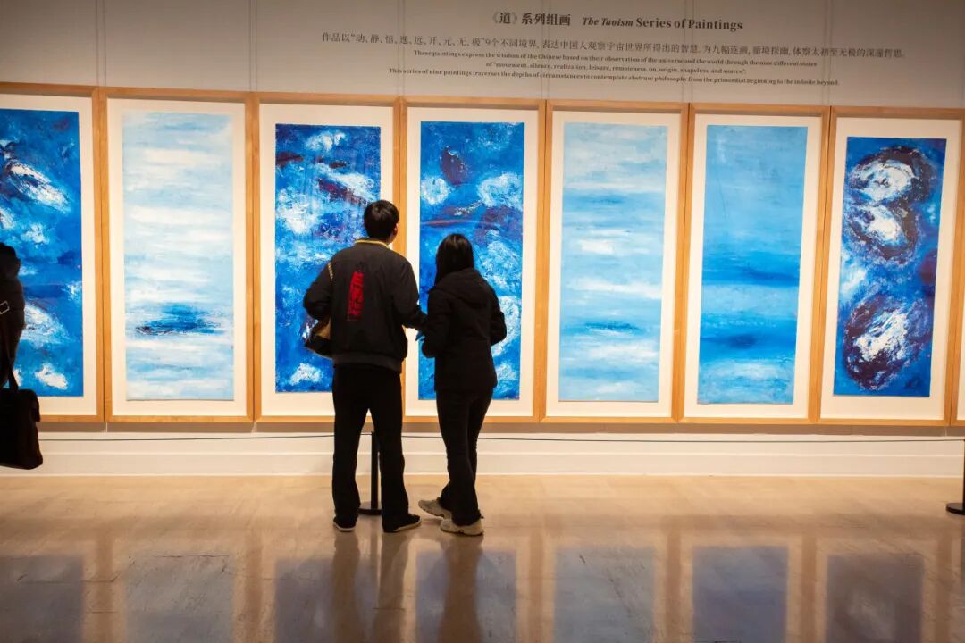 本次展览精心设置三大展区:1号厅完整展示《二十四节气·七十二候》全系列及行为艺术《阳光与和谐的梦想》;8号厅呈现徐冬冬“中国抽象绘画”代表作;9号厅则设置展出“中国意象绘画”与“中国印象绘画”代表作与观展科技互动区域。