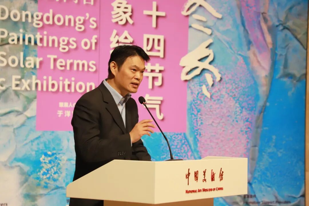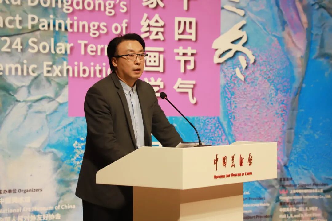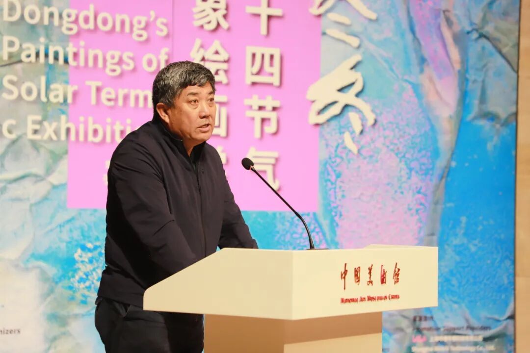 中国美术馆党委书记杨雄致辞表示,徐冬冬先生艺术探索数十载,其抽象绘画融汇中国书法线条与水墨意蕴,创新性地构建了具有东方美学特色的现代艺术语言。此次“二十四节气”系列作品,是从传统文化深处走向现代性表达的生动体现,展现了和谐共生、美美与共的精神追求。