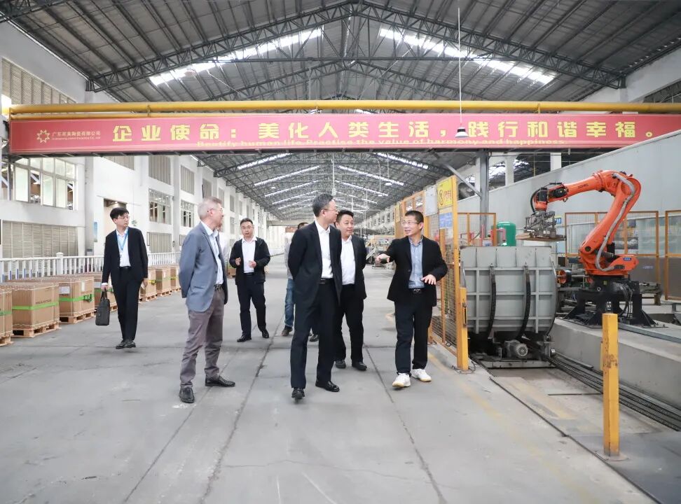 作为广东省清洁生产企业和广东省绿色工厂,马可波罗控股清远生产基地在绿色低碳转型方面成果显著,考察团重点参观其可再生原料循环利用系统,详细了解绿色工厂在资源综合利用和可持续发展方面的领先实践,随后依次走访智能化生产线、新升级的研发中心与检测中心,以及展示企业创新成果的基地展厅。