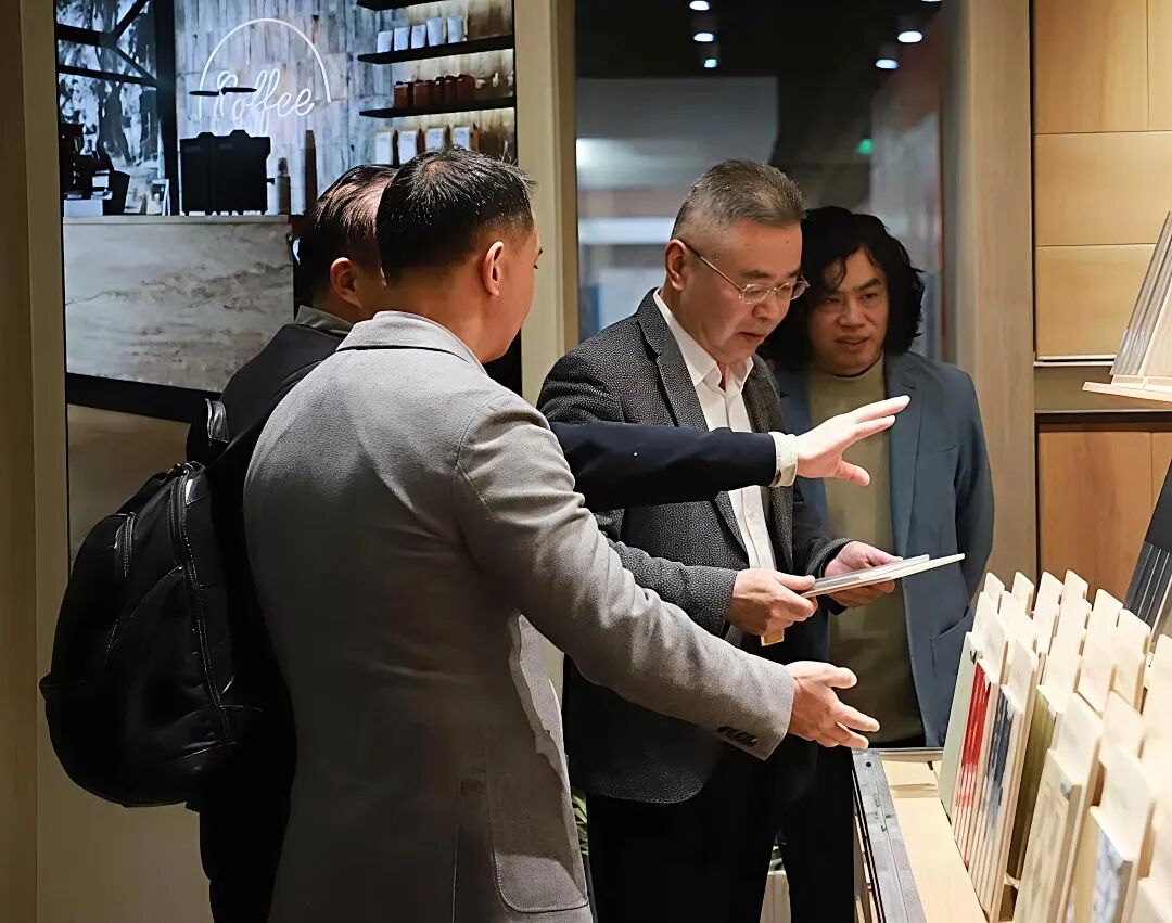 年会期间来自全国各地的马可波罗瓷砖经销服务商走进总部展厅,一同品鉴马可波罗2026新品风采。