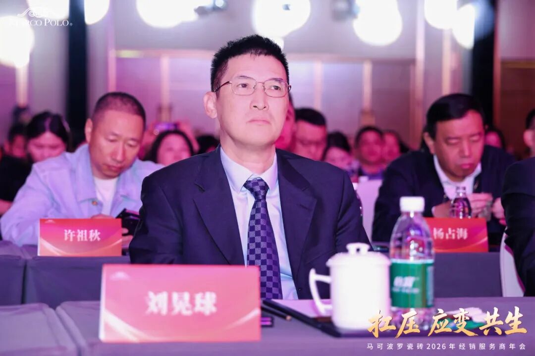 东莞市工商联主席、马可波罗控股董事长黄建平,马可波罗控股总裁谢悦增,马可波罗控股党委书记、董事邓建华,马可波罗控股副总裁、营销中心总经理刘晃球,马可波罗控股集团董事、制造中心总经理钟伟强,马可波罗控股董事会秘书、财务总监叶国华等领导及来自全国的马可波罗瓷砖经销服务商齐聚一堂,回望拼搏笃行的2025,共启砥砺奋进的2026。