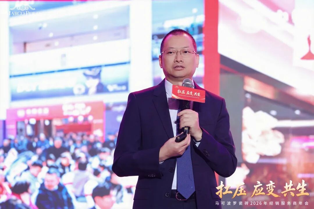 马可波罗控股总裁谢悦增在会上作主题演讲,为公司2026年营销工作作出具体部署。