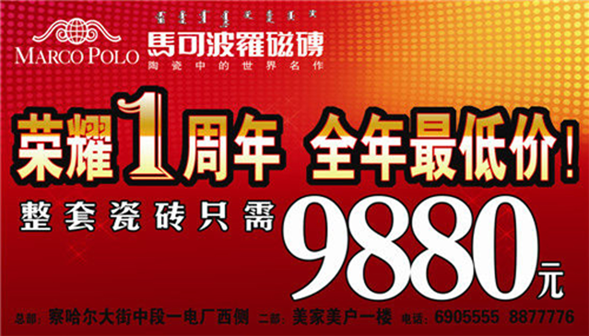 马可波罗瓷砖锡盟旗舰店一周年全年最低价