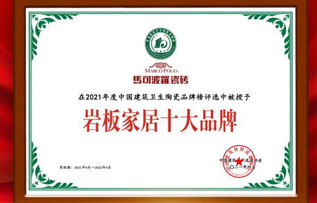 喜报 | 马可波罗瓷砖获“岩板家居十大品牌”!