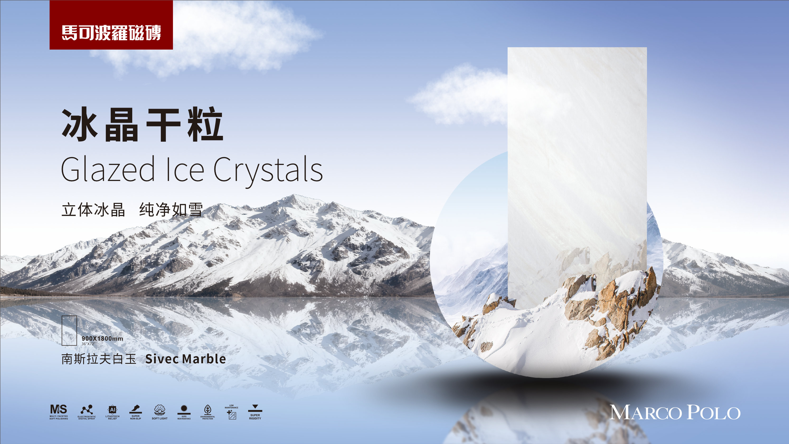 (1)立体冰晶,纯净如雪:釉层添加新型冰晶干粒,把纹理变得更有深度,更立体。跨越传统陶瓷亮面产品的平面纹理输出,首次采用立体纹理结合平面花色的表达方式。光照下呈现冰晶/冰裂质感,犹如哥窑瓷器表面纹理,古朴典雅。(釉下质感,并非表面,不存在吸污氧化问题)