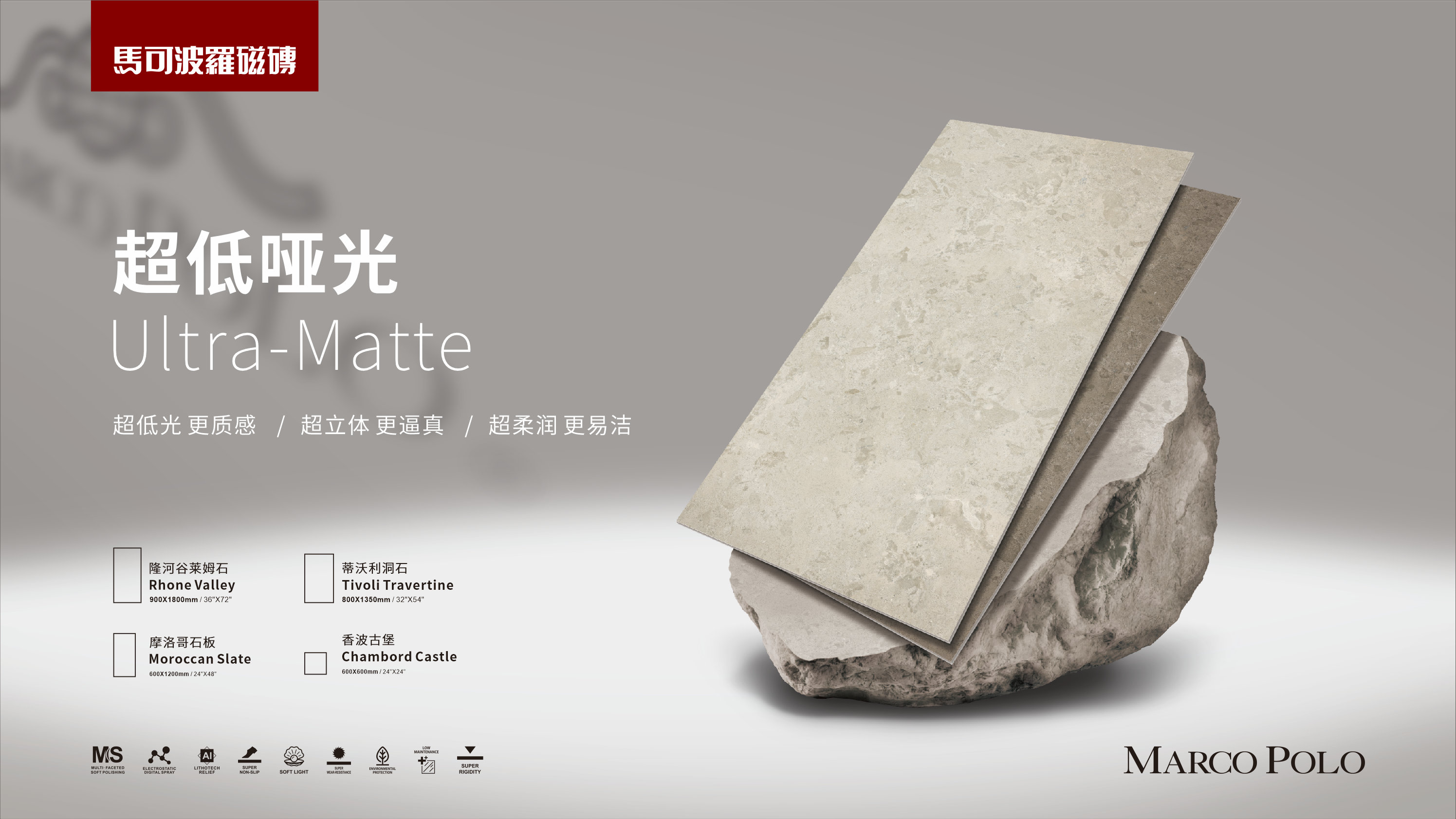 (1) 超低光,更质感:联合国际顶级陶瓷材料商,开发3°超低哑光釉料,避免虚光干扰(光线照射物体表面造成漫射,对视线形成的干扰),还原天然材质立体、清晰的肌理结构,视觉更逼真,质感更真实;
