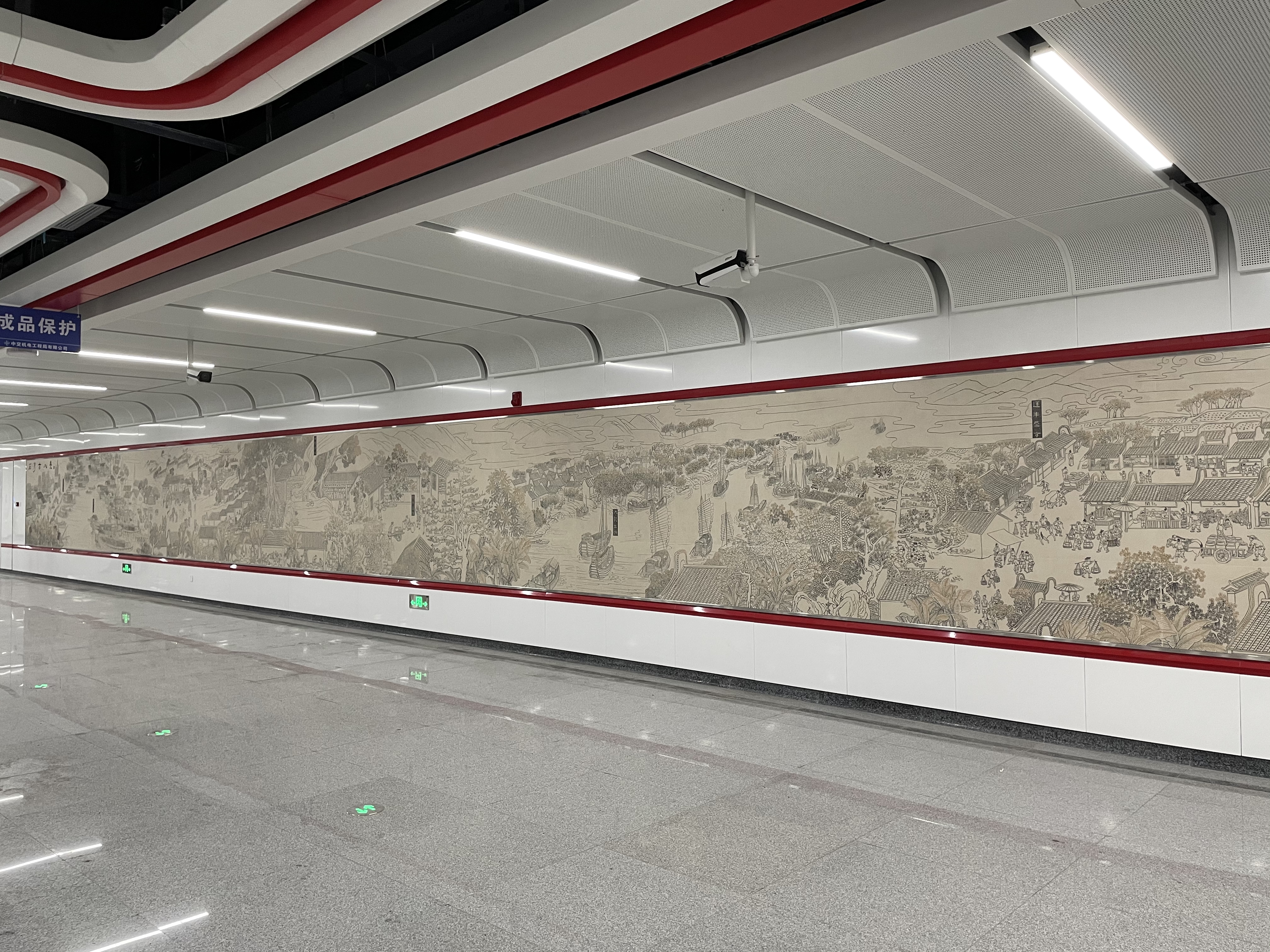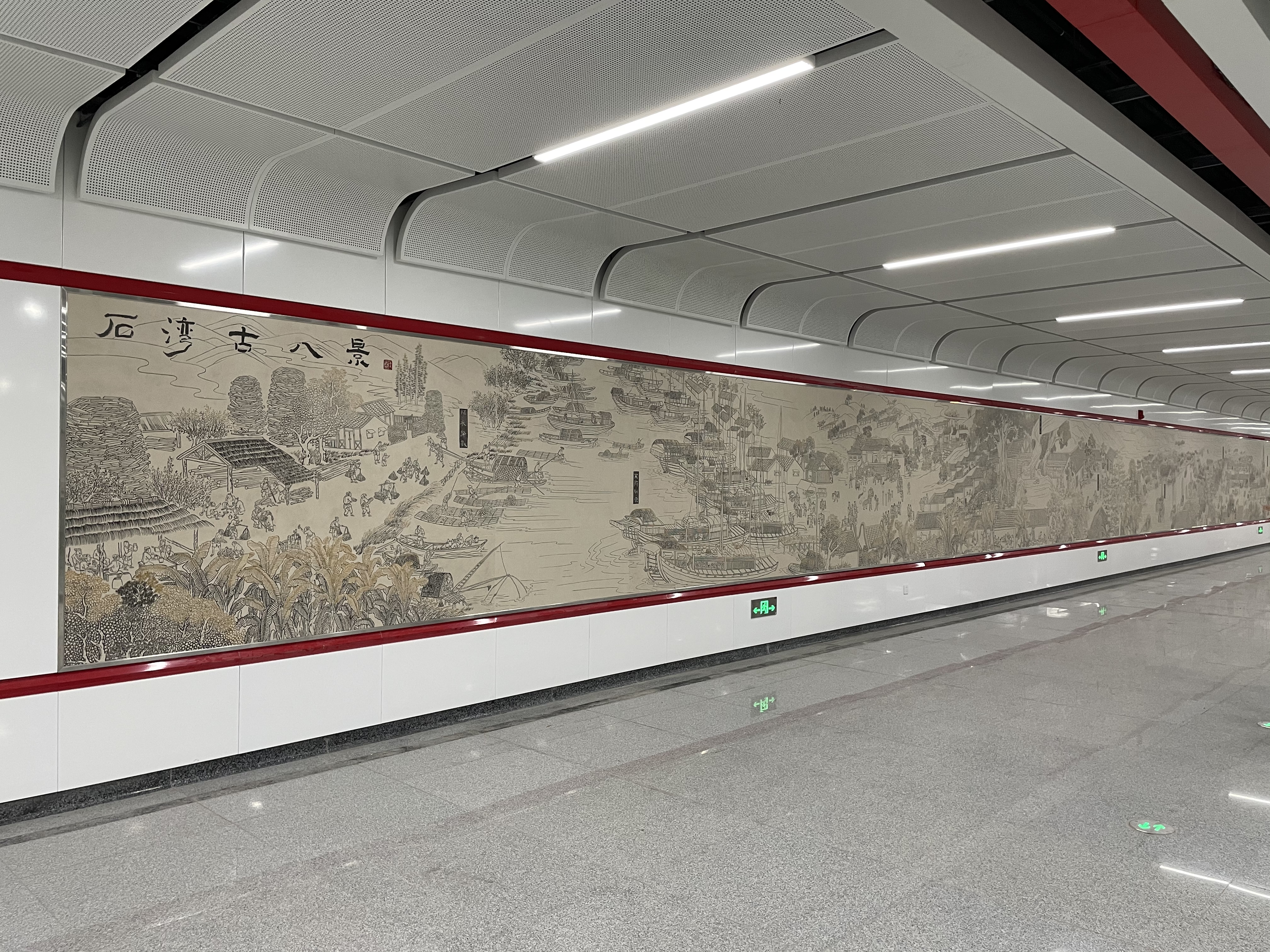 为佛山地铁石湾站制作的陶瓷艺术壁画《石湾古八景》是由广州美术学院魏华教授设计,全画高1.7米,长26.4米,共由66块瓷砖组成,以浅浮雕的手法雕刻成型,展现出浓郁的本土化人文气息,再现了千年陶都的文化底蕴。